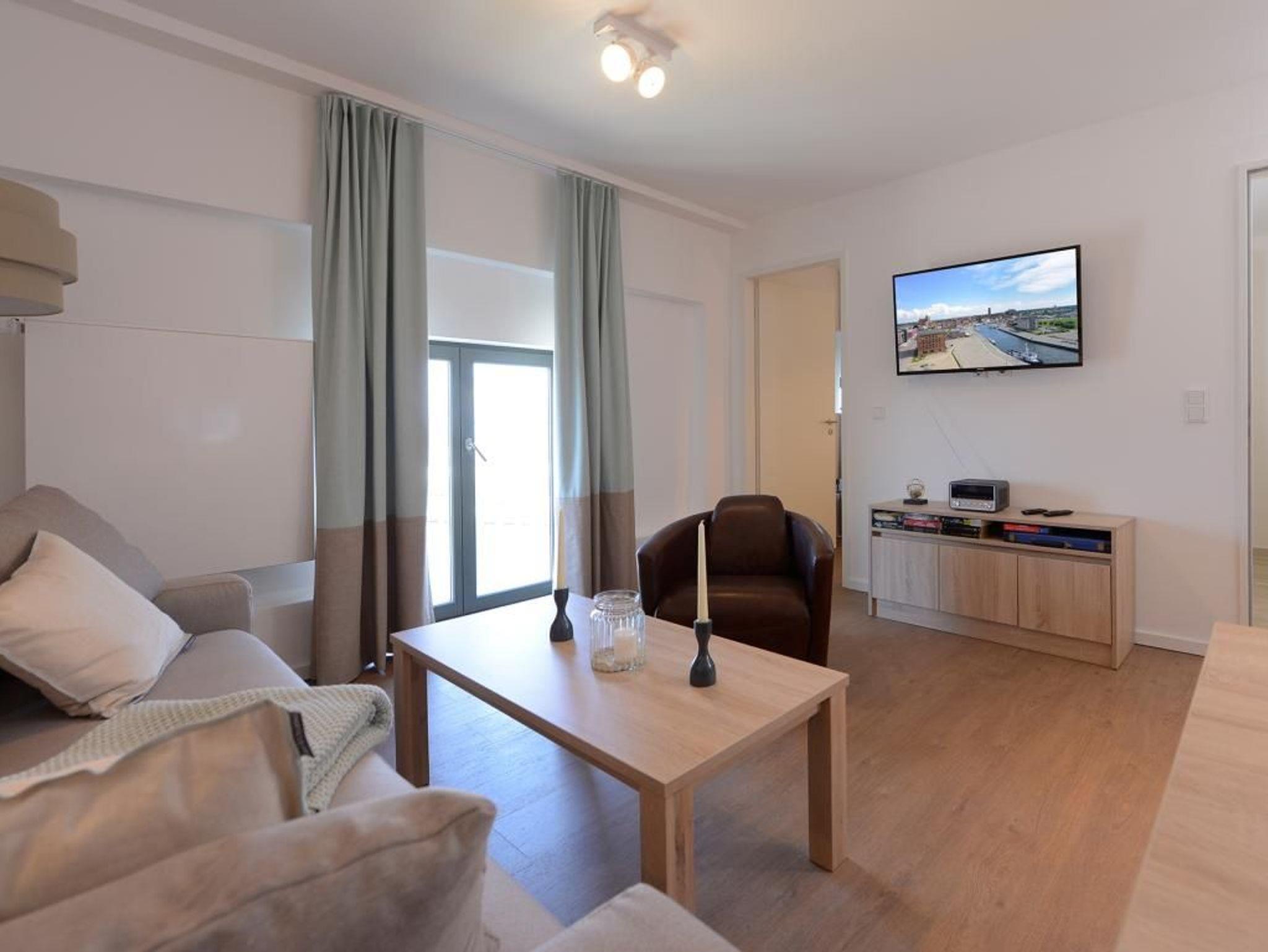 Appartementhaus mit 48 Appartements. Hier residieren Sie in der 6. Etage des Ohlerich Speichers. Durch den Lift ist dieses einfach zu erreichen. Das stilvoll eingerichtete 2-Zimmer-Appartement bietet auf 51m² Wohnfläche Platz für 2 Personen. Der geräumige Wohn- und Essbereich lädt mit einer gemütlichen Couch, einem Esstisch und einem Flachbild- TV zum Verweilen ein. Die voll ausgestattete, separate Küche verfügt über einen Geschirrspüler, eine Mikrowelle, eine Kaffeemaschine, ein Wasserkocher und vieles mehr. Ein großes Doppelbett im Schlafzimmer sorgt für die nötige Erholung. Das Badezimmer ist sehr elegant eingerichtet. Bei Anreise sind 2 Betten bezogen und Handtücher liegen für Sie bereit. WLAN steht Ihnen kostenfrei zur Verfügung. In unmittelbarer Nähe sind öffentliche Parkplätze vorhanden