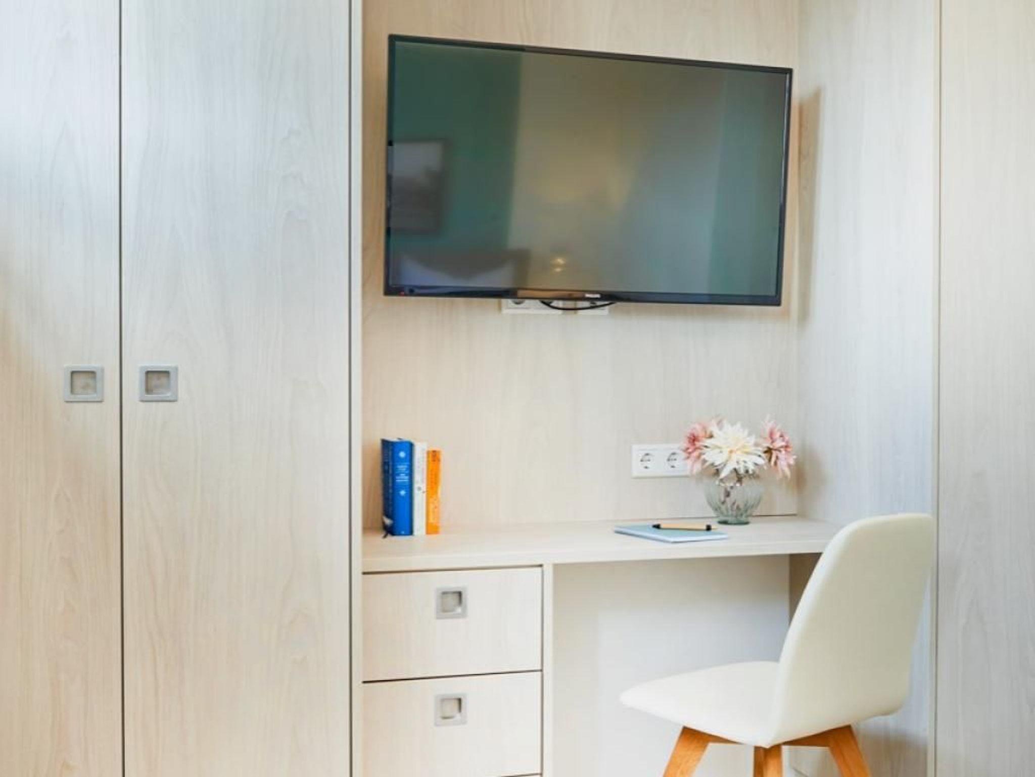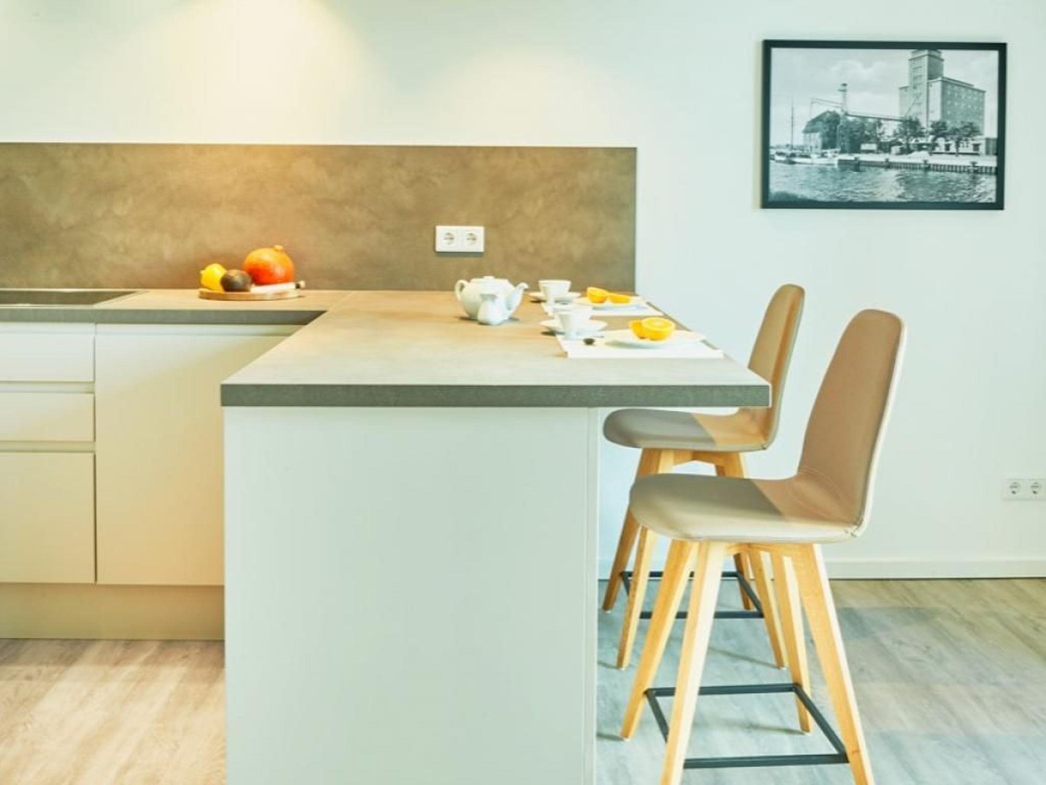 2- Zimmer-Appartement in einem Appartementhaus mit 48 Wohneinheiten. Dieses exklusive 2-Zimmer-Appartement, in der 1. Etage, bietet für bis zu 4 Personen einen Urlaub der Extraklasse. Die 66 m² Wohnfläche sind hochwertig und sehr geschmackvoll eingerichtet. Das Wohn-/ Esszimmer ist mit einer gemütlichen Couch einem Fernseher und einer Essecke ausgestattet. Von dort aus haben Sie direkten Zugang zum Süd/Ost Balkon mit einem wunderbaren Blick auf die Hansestadt Wismar. Die integrierte Küche ist voll ausgestattet (Geschirrspüler, Mikrowelle, Backofen, Kaffeemaschine, Wasserkocher u.v.m.). Das Duschbad und das separate Schlafzimmer mit Doppelbett ist sehr modern eingerichtet. WLAN steht Ihnen kostenfrei zur Verfügung. Bei Anreise ist ein Bett für 2 Personen bezogen und Handtücher liegen für Sie bereit. In unmittelbarer Nähe sind öffentliche Parkplätze vorhanden. Ein Hund ist gegen eine Gebühr in Höhe von 10 Euro/ Tag gestattet.