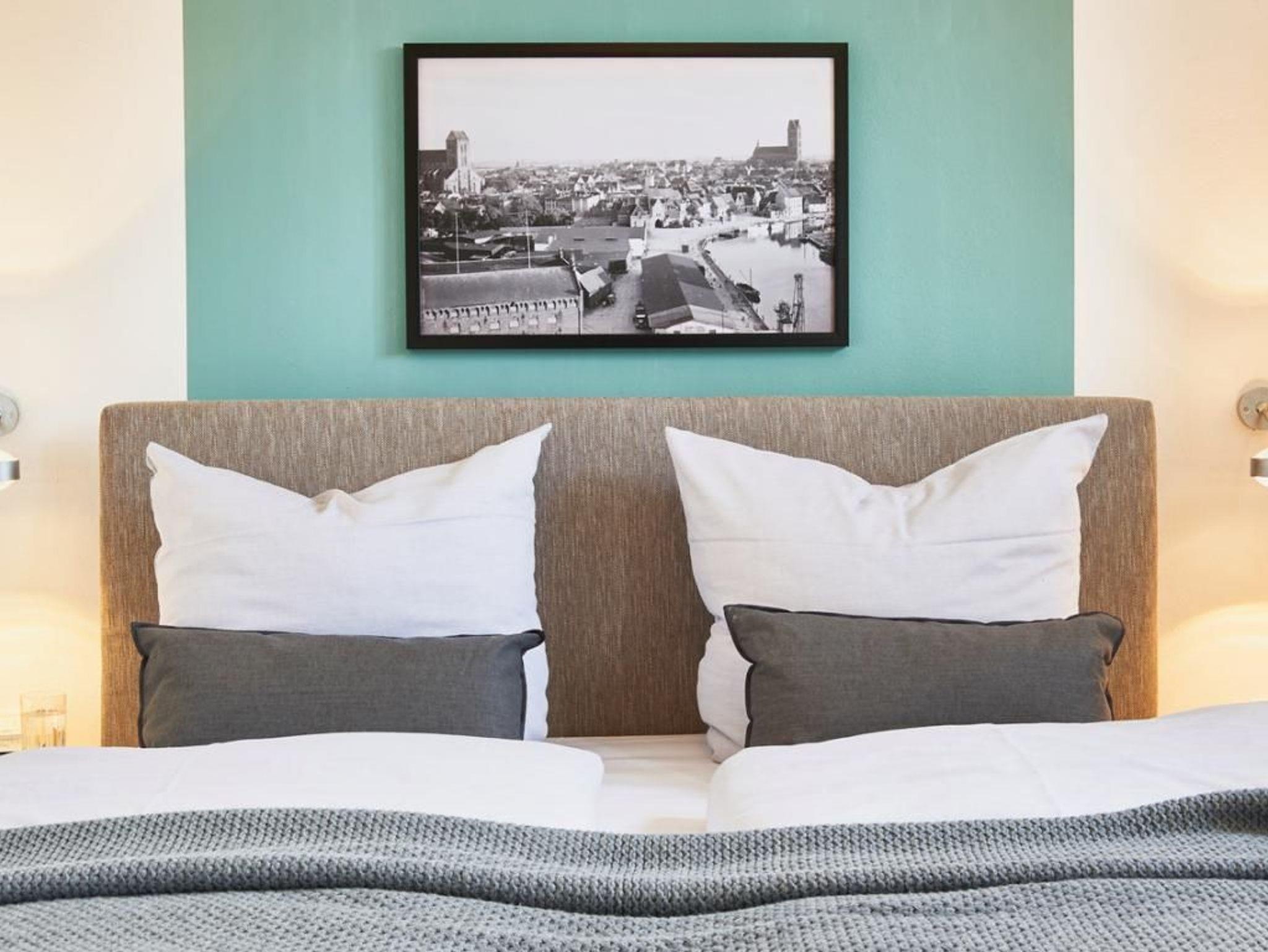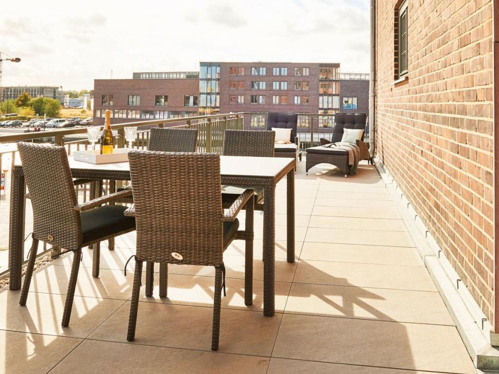 Dieses exklusive 2-Zimmer-Appartement, in der 1. Etage, bietet für bis zu 4 Personen einen Urlaub der Extraklasse. Die 66 m² Wohnfläche sind hochwertig und sehr geschmackvoll eingerichtet. Das Wohn-/ Esszimmer ist mit einer gemütlichen Couch einem Fernseher und einer Essecke ausgestattet. Von dort aus haben Sie direkten Zugang zum Süd/Ost Balkon mit einem wunderbaren Blick auf die Hansestadt Wismar. Die integrierte Küche ist voll ausgestattet (Geschirrspüler, Mikrowelle, Backofen, Kaffeemaschine, Wasserkocher u.v.m.). Das Duschbad und das separate Schlafzimmer mit Doppelbett ist sehr modern eingerichtet. WLAN steht Ihnen kostenfrei zur Verfügung. Bei Anreise ist ein Bett für 2 Personen bezogen und Handtücher liegen für Sie bereit. In unmittelbarer Nähe sind öffentliche Parkplätze vorhanden.