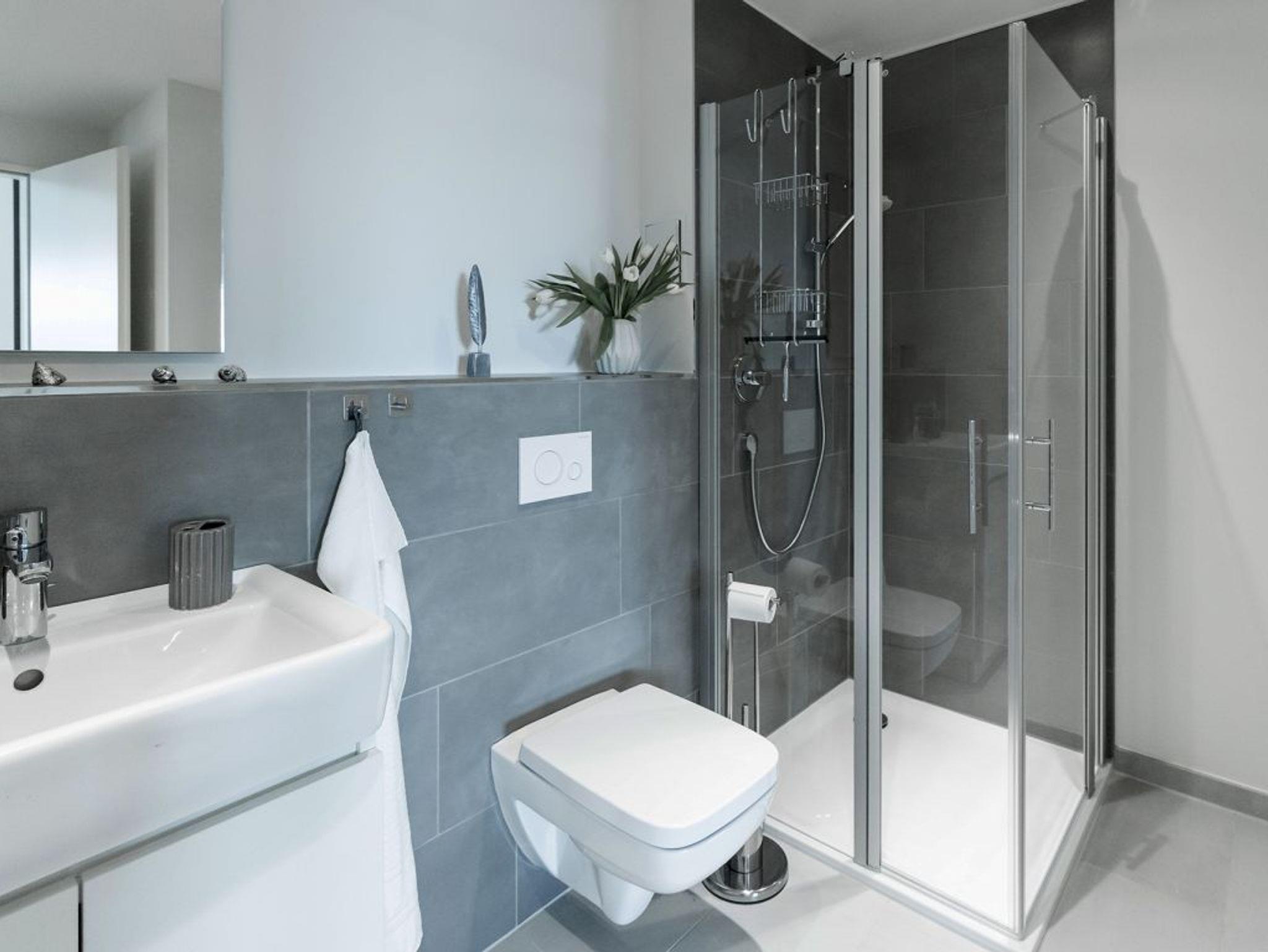 Der helle Wohn-/Essbereich bietet eine charmant moderne Möblierung und für technische Unterhaltung sorgen Flatscreen und Internetradio mit Hotelmodus. WLAN nutzen Sie selbstverständlich kostenfrei. Integriert ist zudem eine bestens ausgestattete Komfort Küchenzeile, so dass Sie sich bei Bedarf auch selbst versorgen können. Vom sonnigen Balkon blicken Sie entspannt auf das lebendige Hafenleben. Während der warmen Jahreszeit sorgen elektrisch bedienbare Außenrollos für die Beschattung der Wohnräume. Insbesondere ist hervorzuheben, dass dieses Appartement mit zwei separaten Schlafzimmern jeweils mit Garderobenschrank sowie mit zwei Duschbädern ausgestattet ist. Somit eignet sich diese Wohneinheit auch gut für befreundete Paare.