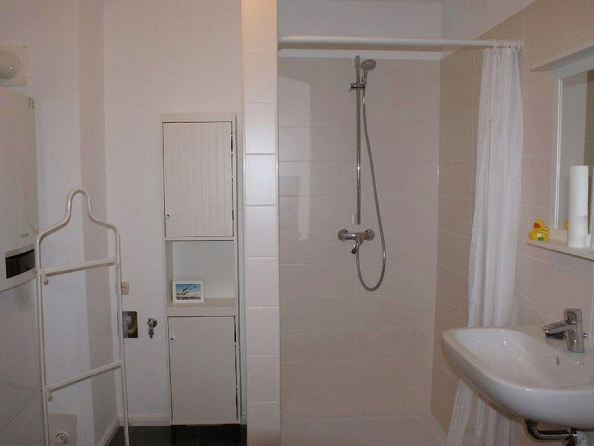 - Bad mit Dusche, Toilette, Waschbecken, Fußbodenheizung