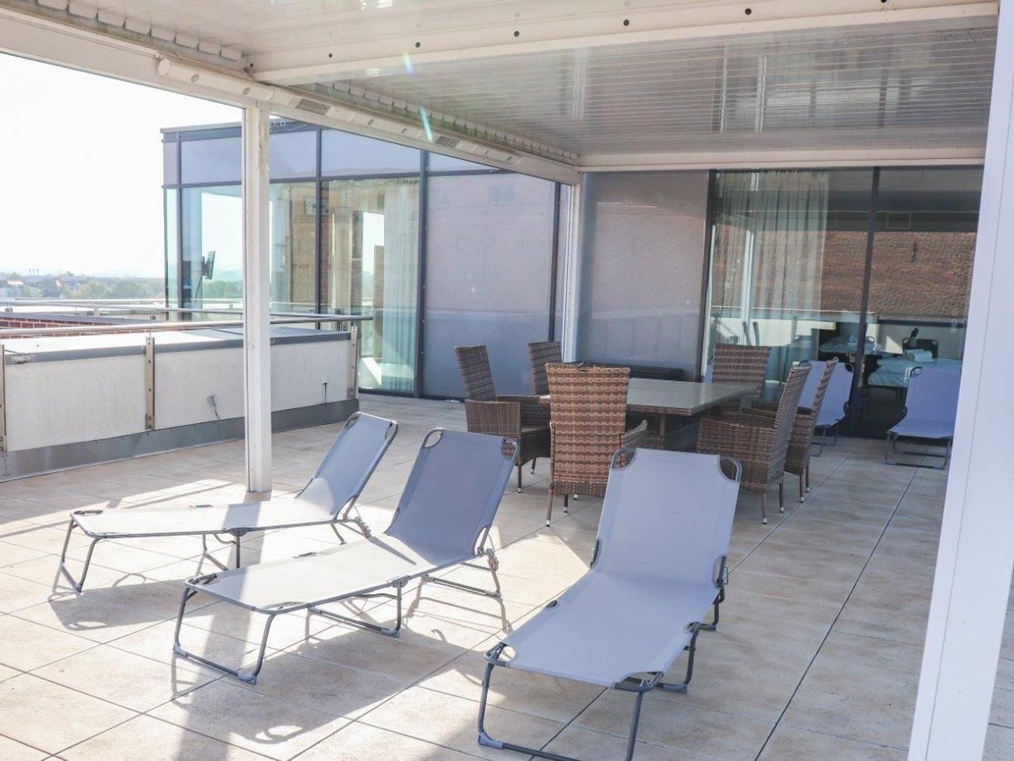 - große Dachterrasse 360 Grad begehbar, teilweise überdacht mit 6 Stühlen und Esstisch, 6 Sonnenliegen