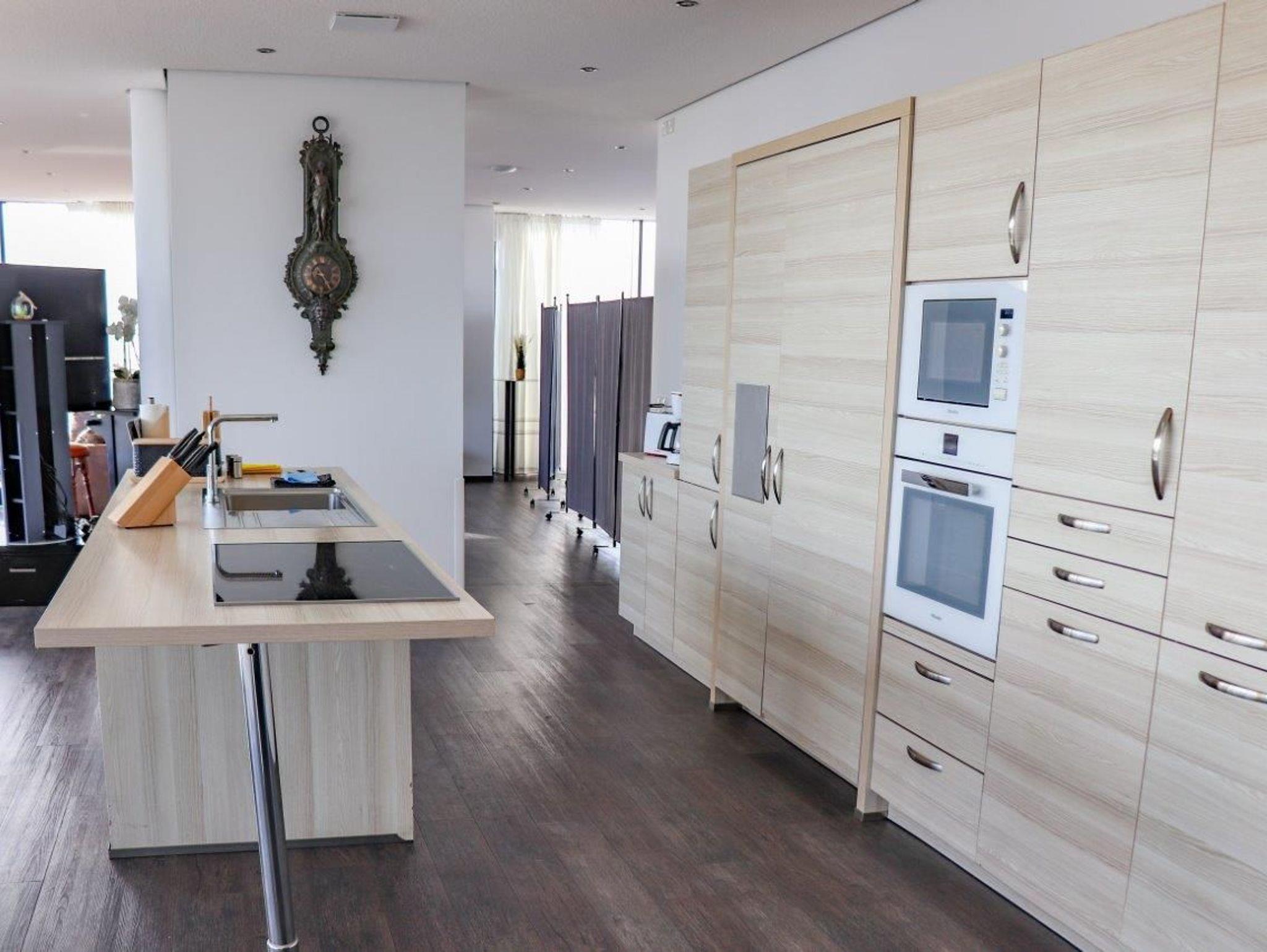 Küchenausstattung: Side-by-Side Kühlschrank mit Gefrierfach, Geschirrspüler, Backofen, Kaffeemaschine, Wasserkocher, Toaster, Geschirr, Besteck, Töpfe, Pfannen uvm.
