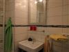 ? Badezimmer mit Dusche, WC, Spiegel, Waschbecken, Schrank, Handtuchregal, Fön, Handtuchheizkörper,