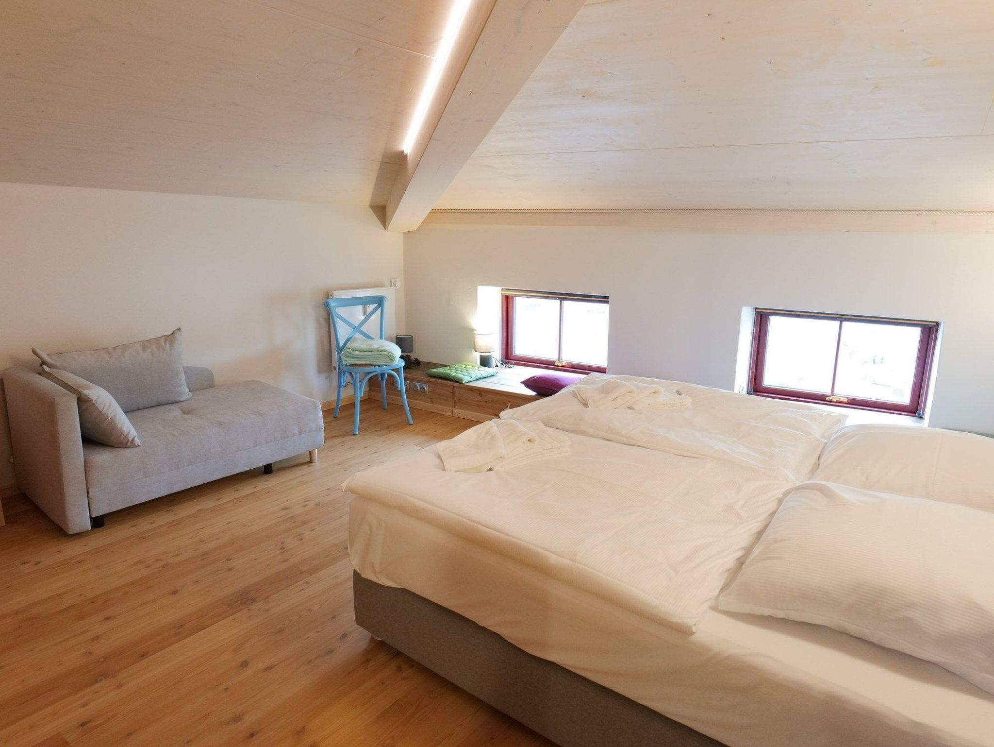 - Schlafzimmer 3 mit Doppelbett (1,80 x 2,00 m), Einsitzercouch, Kamin (Achtung, das Schlafzimmer 3 ist das Durchgangszimmer zum Schlafzimmer 4)