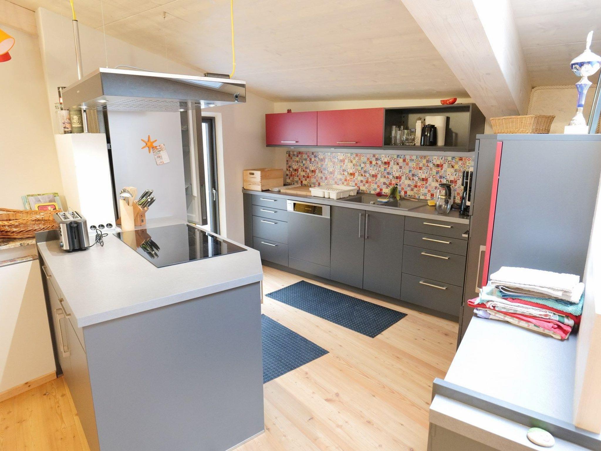 - Küche mit Essbar, ausgestattet mit 4 Platten-Ceranfeld mit Dunstabzugshaube, Geschirrspüler, Backofen, Kühlschrank mit Gefrierfach, Kaffeemaschine, Wasserkocher, Toaster, Besteck, Geschirr, Gläser uvm.