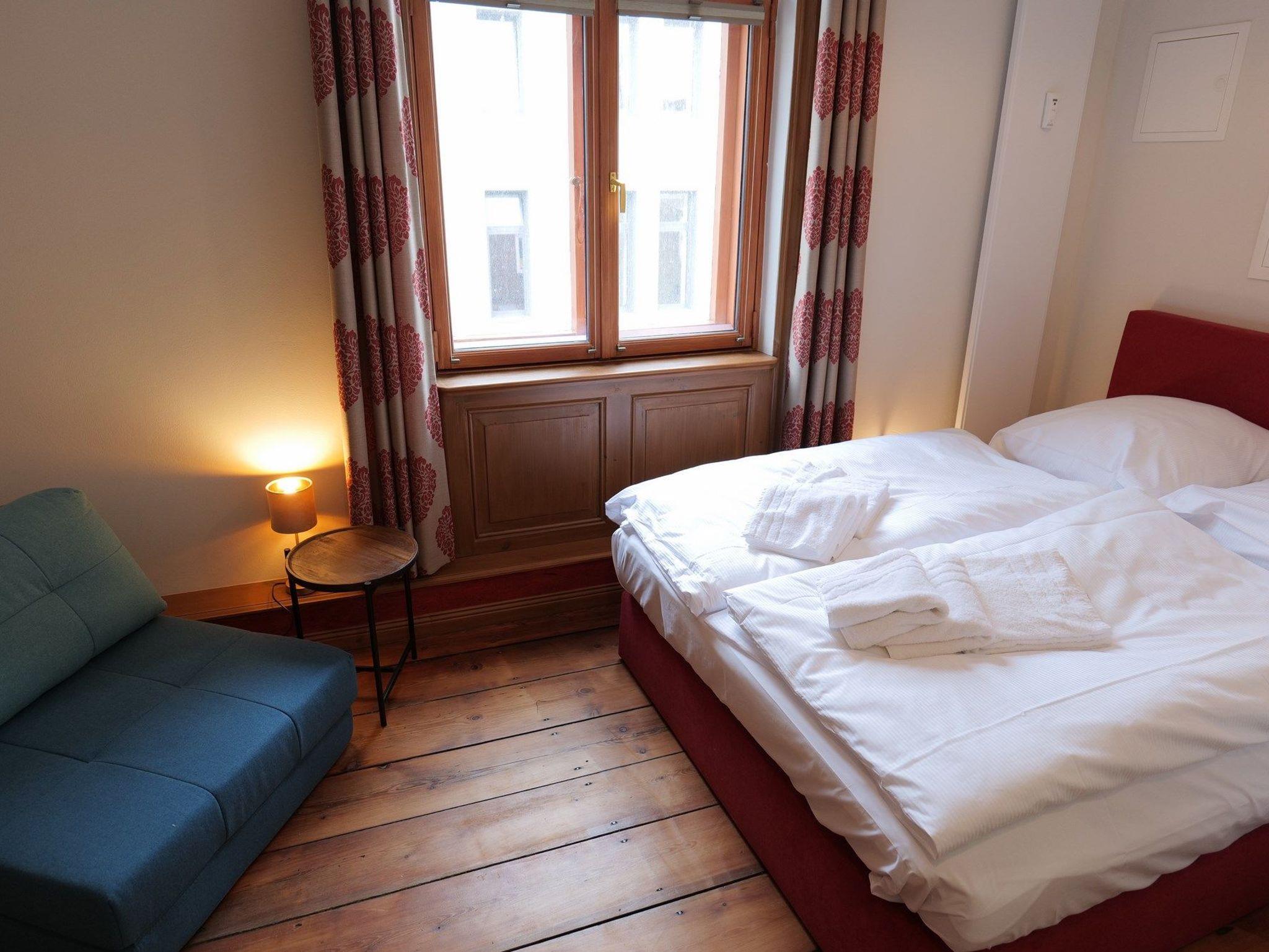 - Schlafzimmer 1 mit Doppelbett (1,80 x 2,00 m), Doppelbett zum Ausziehen (1,80 x 2,00 m), Sessel