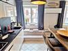 • offene moderne Küche mit Backofen, Ceranherd, Wasserkocher, Kaffeemaschine, Geschirrspüler, Kühlschrank, Toaster, Geschirr, Gläser, Besteck uvm..