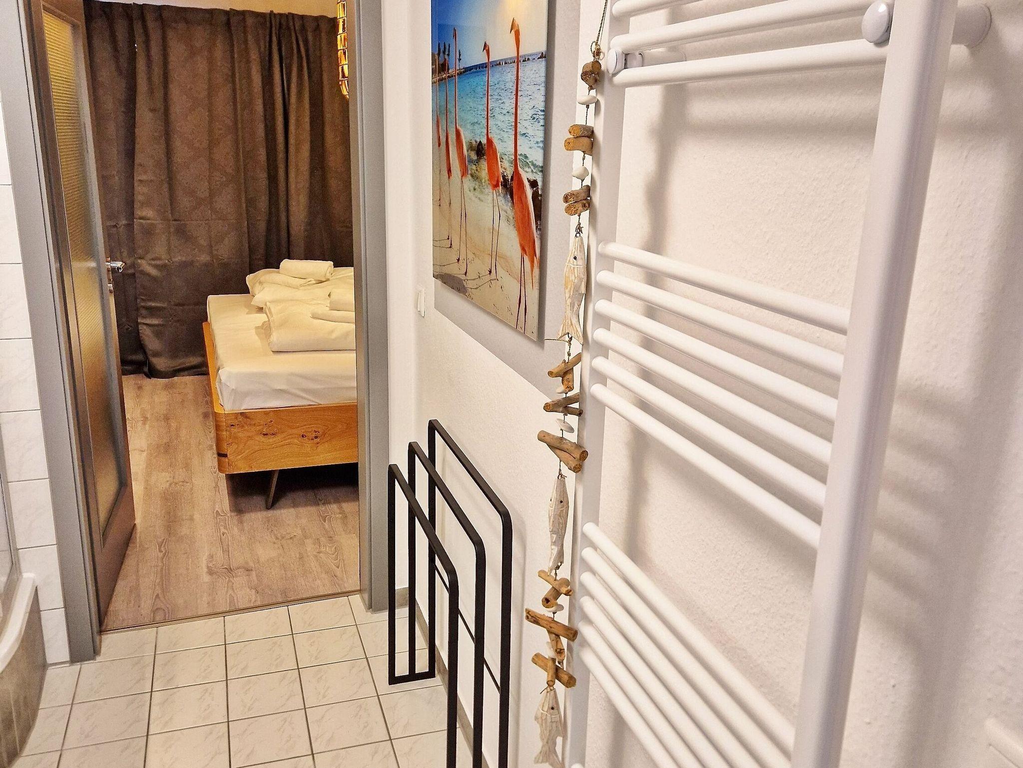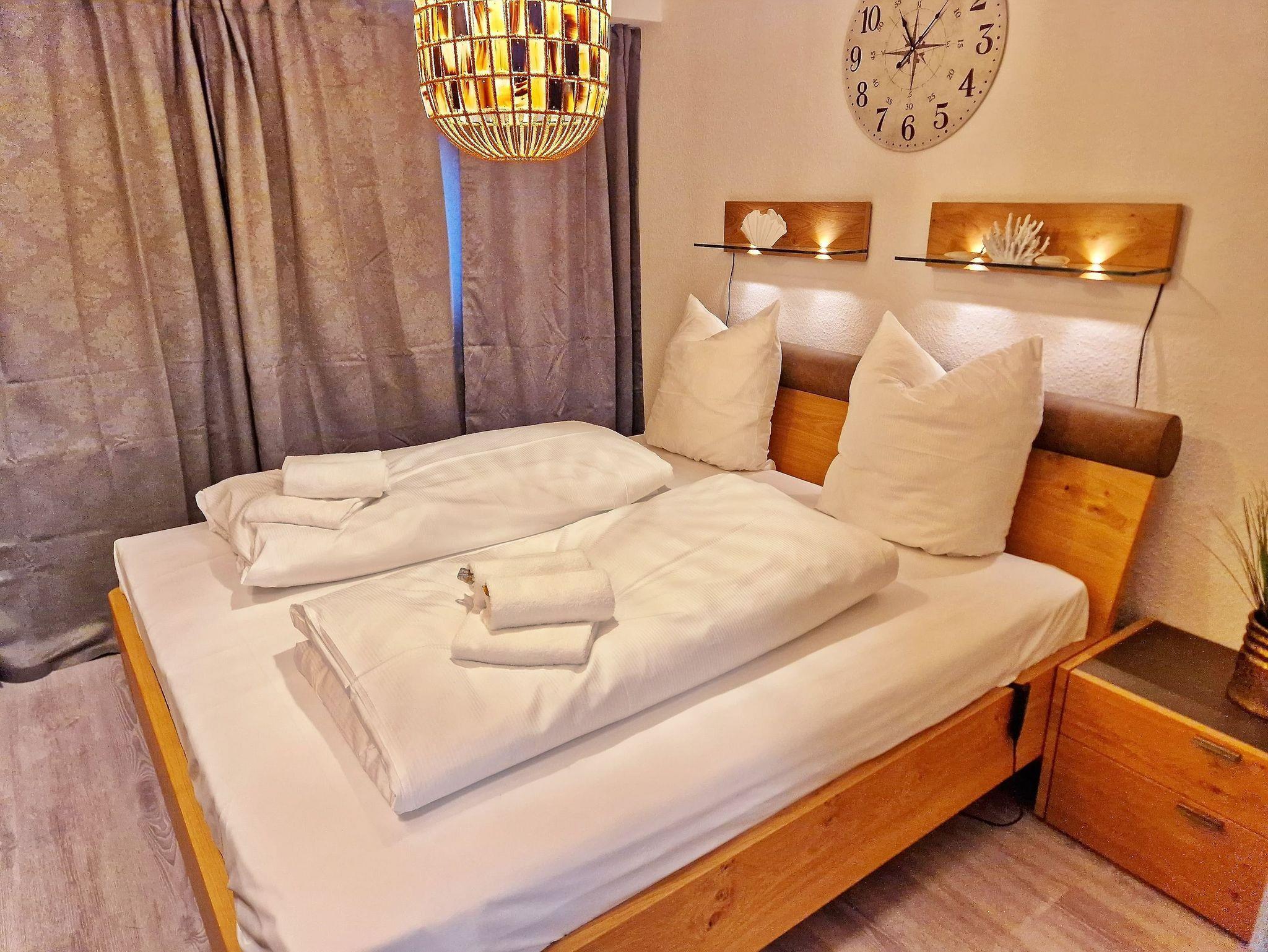 • 1 Schlafzimmer separat mit großem Doppelbett (1,80 x 2,00 m, höhenverstellbar), sowie ausreichend Stauraum für Ihre Kleidung. Hochwertige Biobettdecken und Kopfkissen allergikergeeignet.