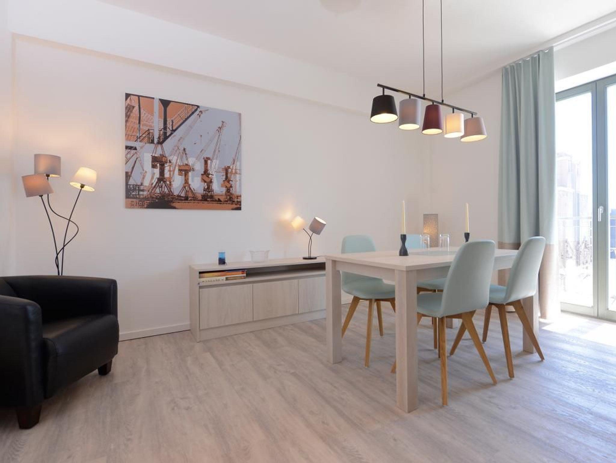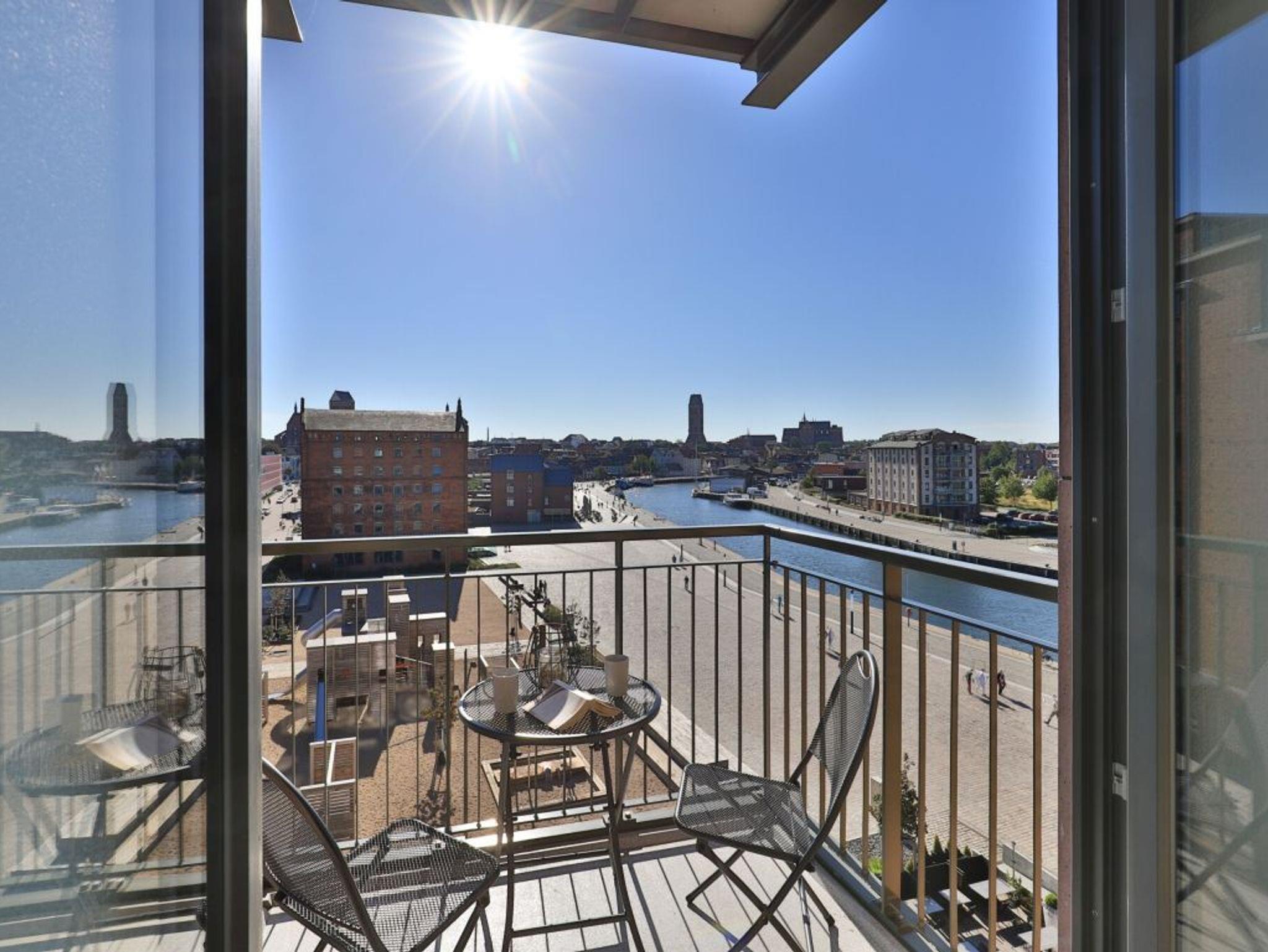 Dieses 56m² große, exklusiv eingerichtete 2-Zimmer-Appartement bietet für bis zu 4 Gästen Platz. Es befindet sich im 4. Obergeschoss , dass Sie leicht über den Lift erreichen. Der gemütliche Wohn-/ Essbereich ist mit einem Sofa, einem Fernseher und einer Essecke komfortabel ausgestattet. Von dort aus haben Sie direkten Zugang zum Süd/Ost Balkon und genießen einen traumhaften Blick auf die wunderschöne Altstadt Wismars. Eine separate Küche (Mikrowelle, Geschirrspüler, Herd und vieles mehr) ist hochwertig eingerichtet. Des Weiteren steht Ihnen ein stilvolles Duschbad zur Verfügung. Im Schlafbereich erwartet Sie ein gemütliches Doppelbett.Bei Anreise sind 2 Betten bezogen und Handtücher liegen für Sie bereit. WLAN steht Ihnen kostenfrei zur Verfügung. In unmittelbarer Nähe sind öffentliche Parkplätze vorhanden.