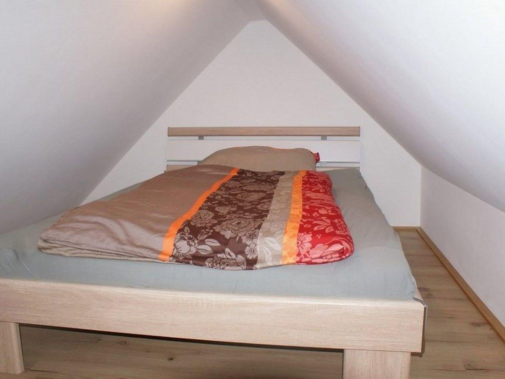 - 2. Schlafraum im Spitzboden mit Doppelbett (1,40 x 2,00 Meter), durch die schmale Treppe und geringe Höhe eher für Kinder und Jugendliche geeignet