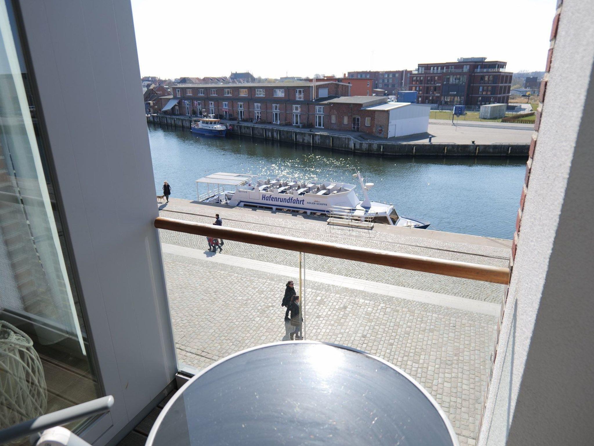 - Balkon mit Hafenblick mit Sitzmöbel (Stühle + Tisch)