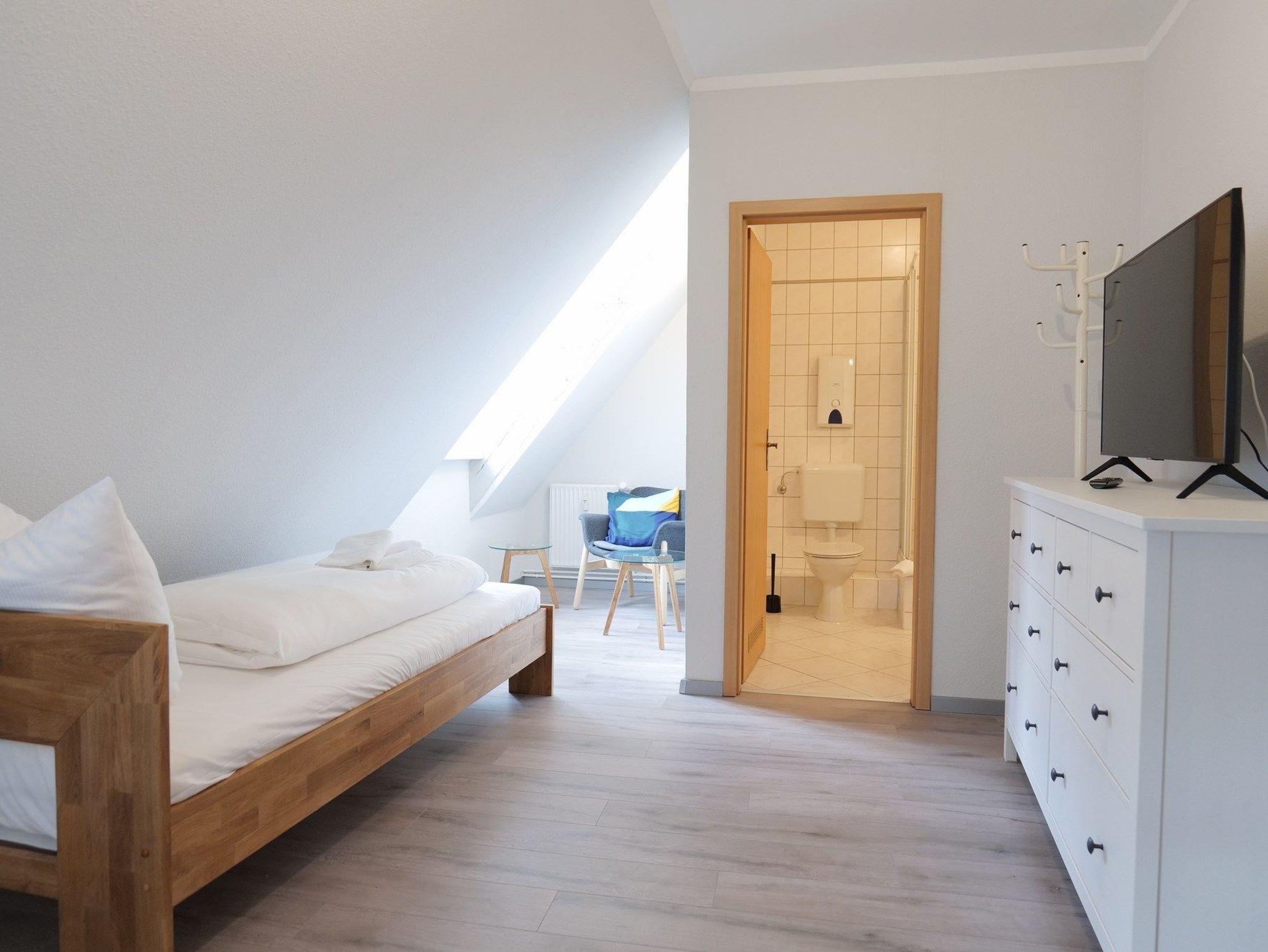 1 Wohn-/ Schlafzimmer für 1 Person mit Einzelbett, Flat-TV, Sitzecke