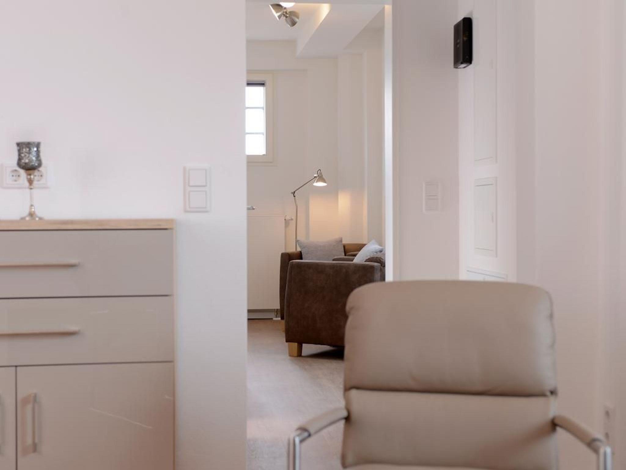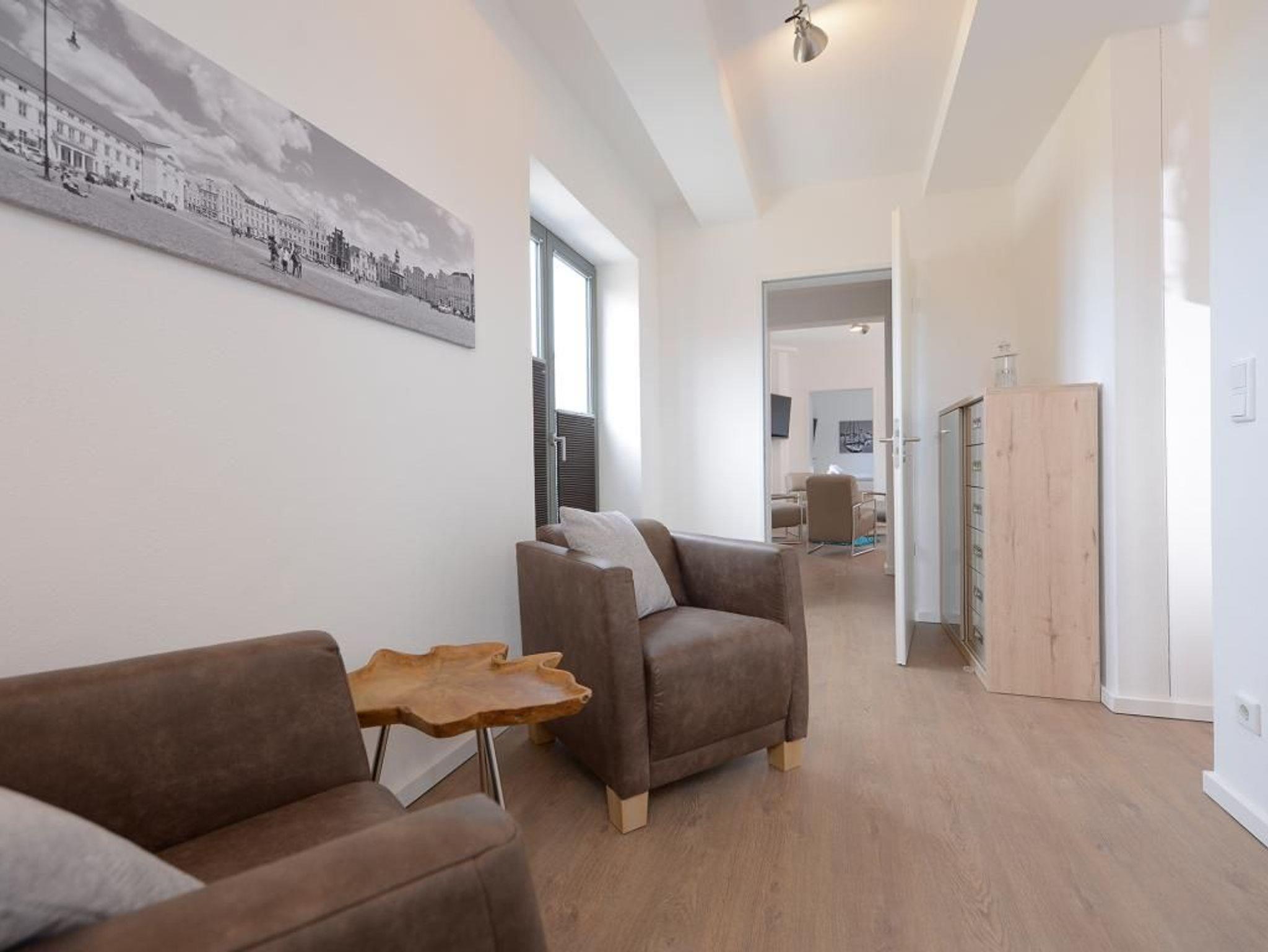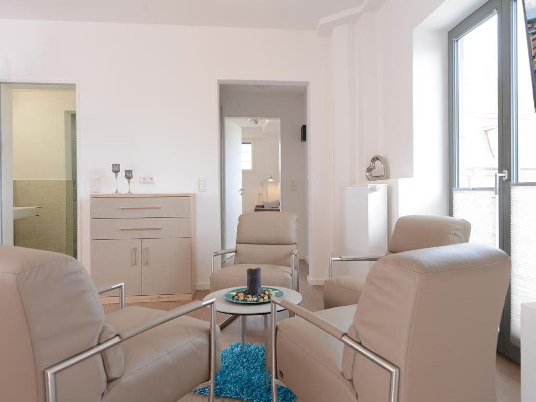 Das charmante 3 Zimmer-Appartement befindet sich in der 1. Etage mit Balkon bietet mit 63m² einen Urlaub der Extraklasse für 4 Personen. Der elegant eingerichtete Wohnraum verfügt über einen Fernseher. Die separate Küche ist komplett ausgestattet, mit Geschirrspüler, Mikrowelle, Kaffeemaschine, Wasserkocher u.v.m. und lässt somit keine Wünsche offen. 2 elegant möblierte Schlafzimmer sorgen für erholsame Nächte. Des Weiteren verfügt dieses exklusive Appartement über ein Duschbad in hochwertiger Ausführung. WLAN steht Ihnen kostenfrei zur Verfügung. Bei Anreise ist ein Bett für 2 Personen bezogen und Handtücher liegen für Sie bereit. In unmittelbarer Nähe sind öffentliche Parkplätze vorhanden.