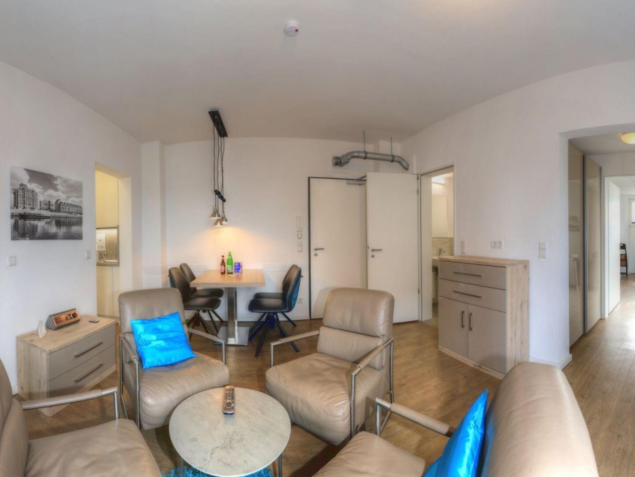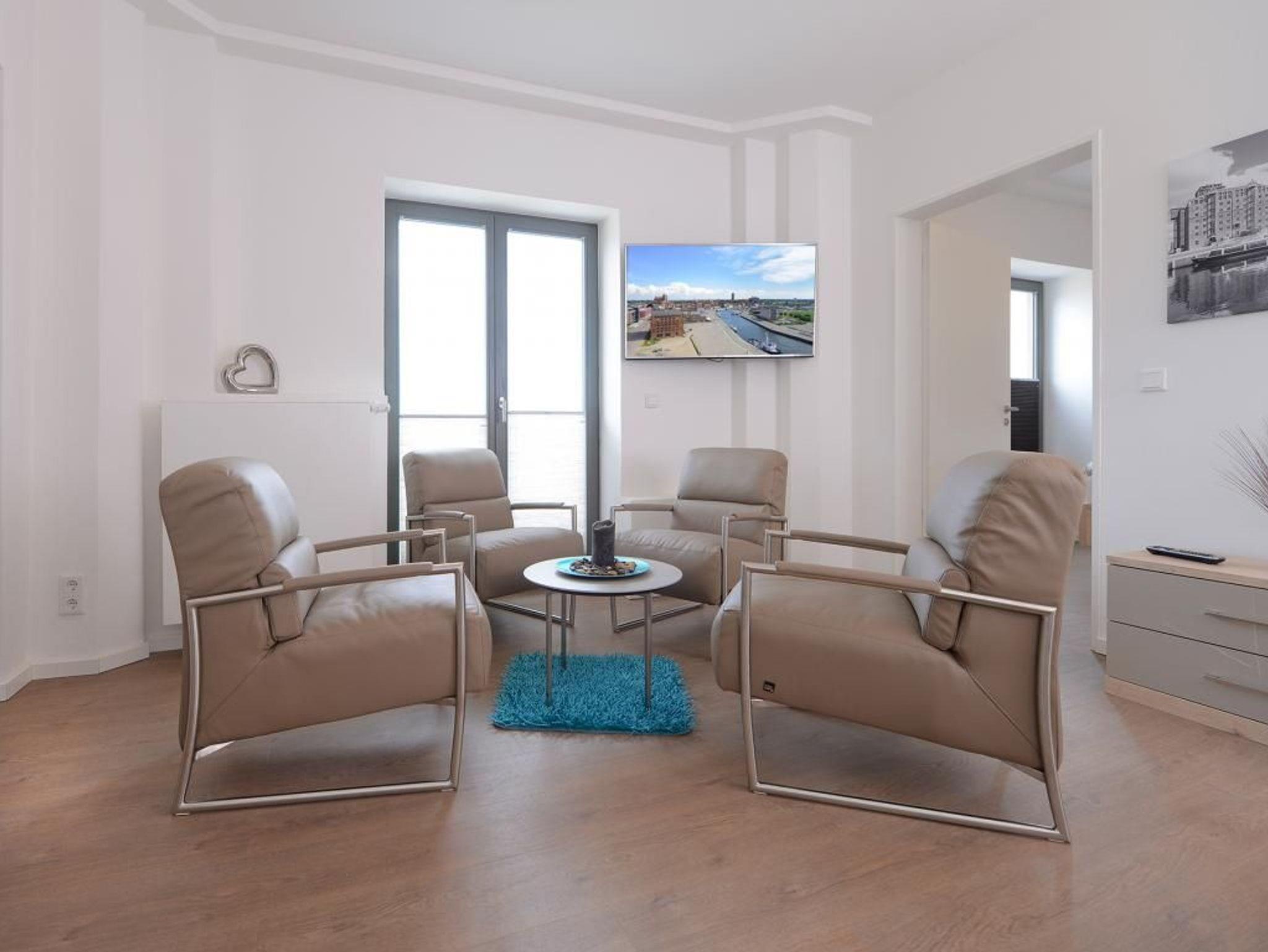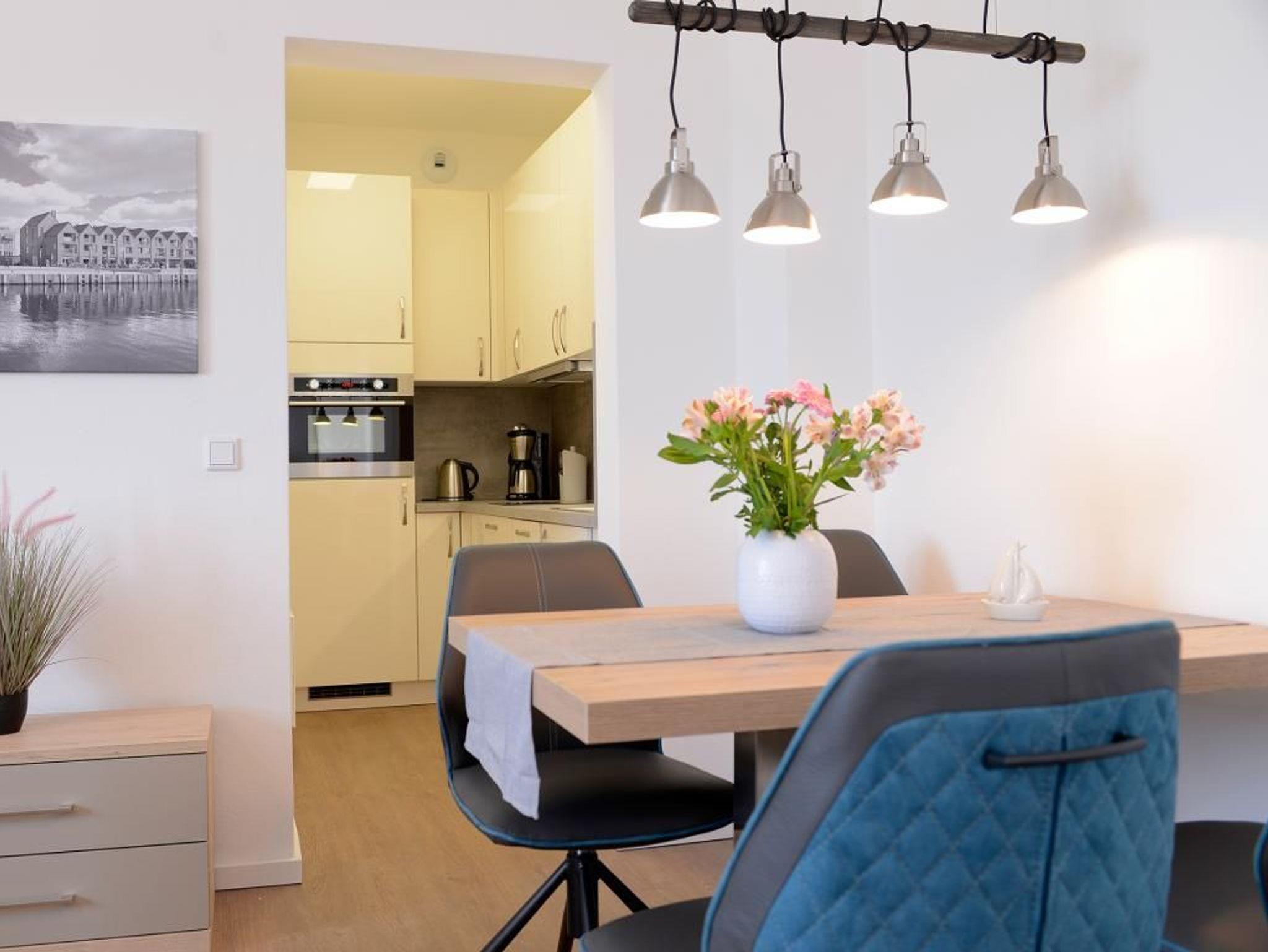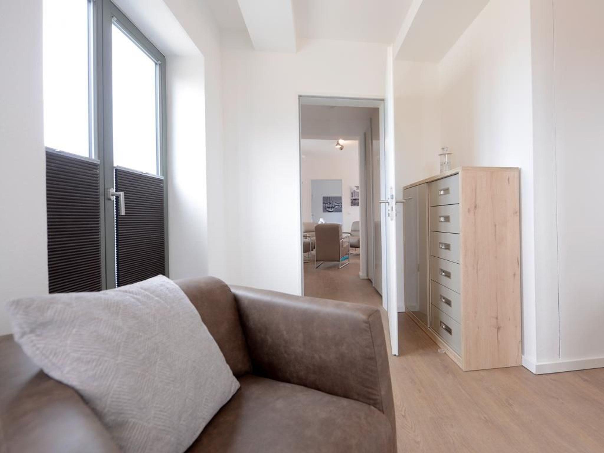 Das charmante 3 Zimmer-Appartement befindet sich in der 1. Etage mit Balkon bietet mit 63m² einen Urlaub der Extraklasse für 4 Personen. Der elegant eingerichtete Wohnraum verfügt über einen Fernseher. Die separate Küche ist komplett ausgestattet, mit Geschirrspüler, Mikrowelle, Kaffeemaschine, Wasserkocher u.v.m. und lässt somit keine Wünsche offen. 2 elegant möblierte Schlafzimmer sorgen für erholsame Nächte. Des Weiteren verfügt dieses exklusive Appartement über ein Duschbad in hochwertiger Ausführung. WLAN steht Ihnen kostenfrei zur Verfügung. Bei Anreise ist ein Bett für 2 Personen bezogen und Handtücher liegen für Sie bereit. In unmittelbarer Nähe sind öffentliche Parkplätze vorhanden.