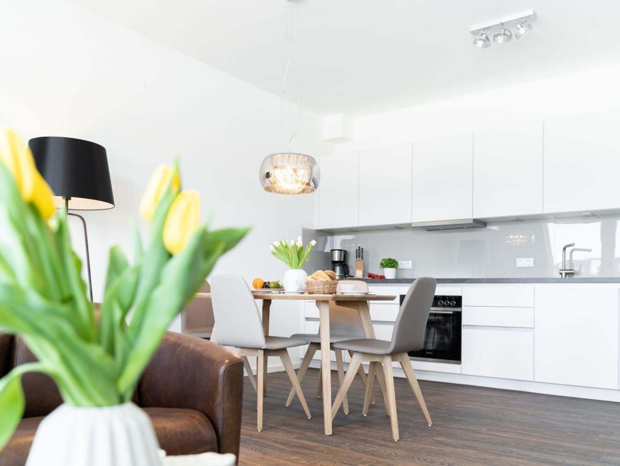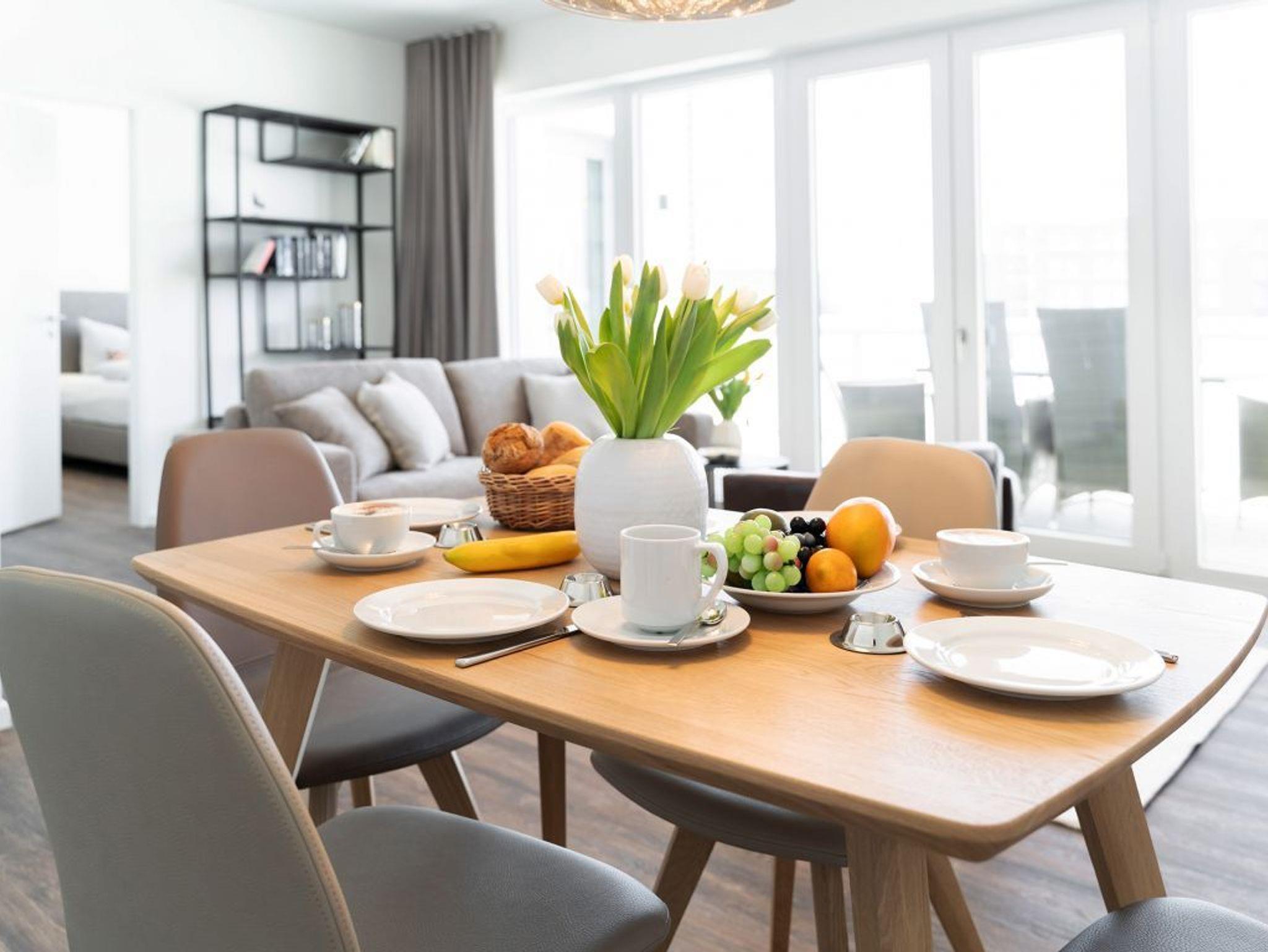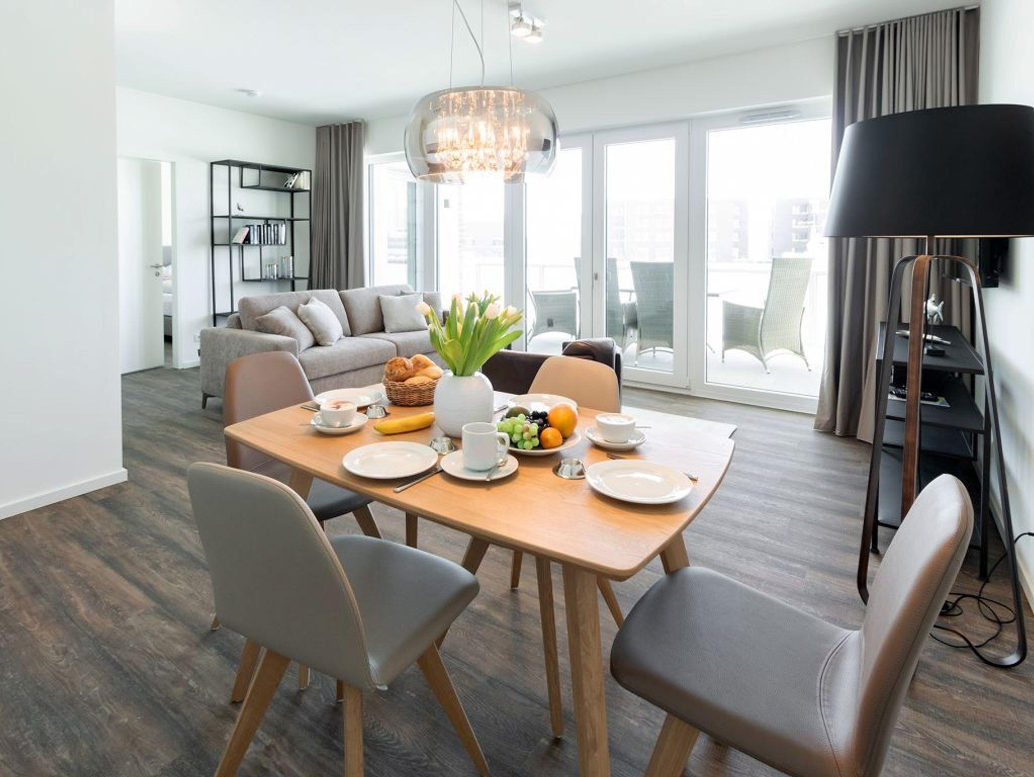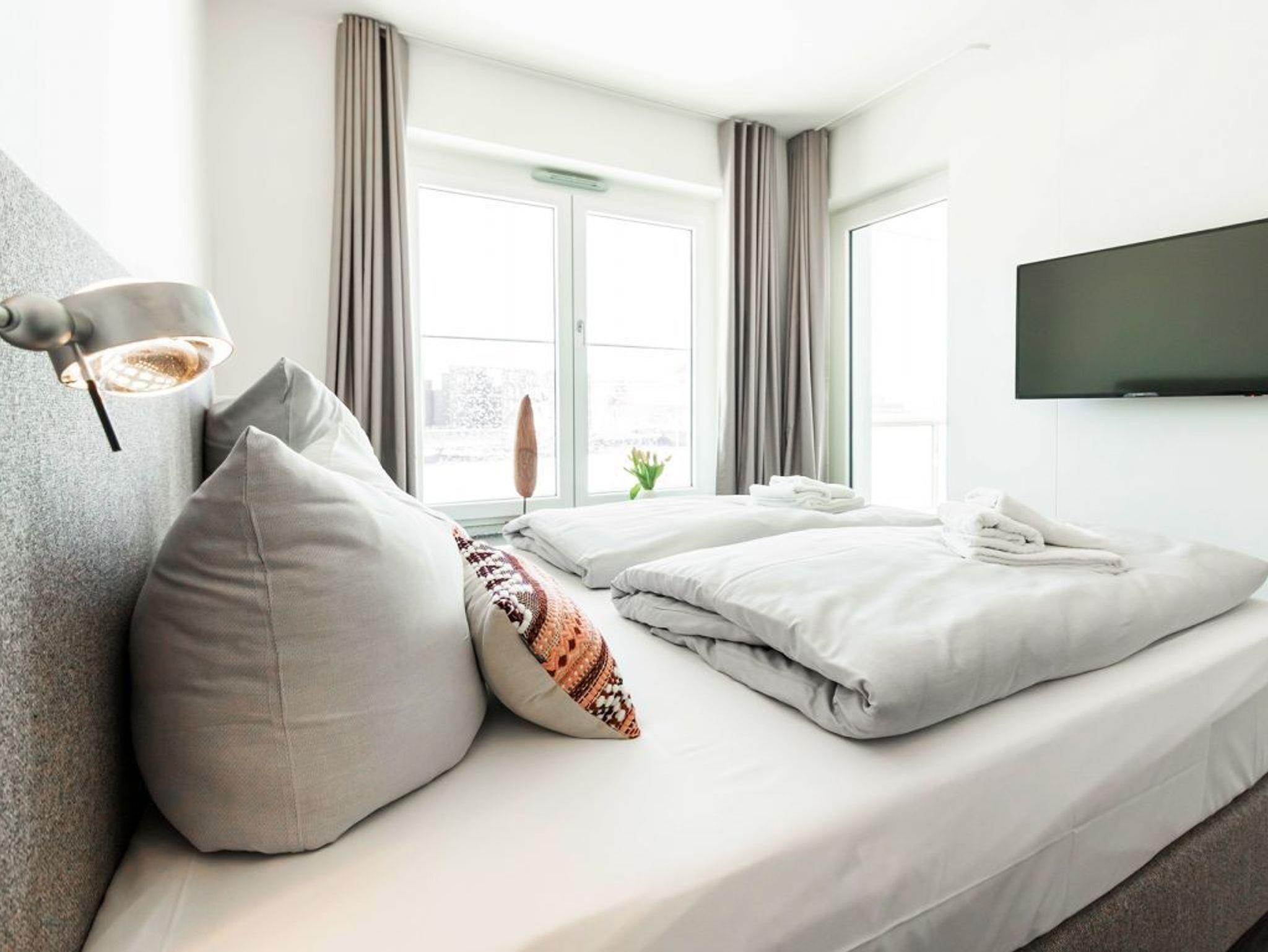 Checken Sie ein in die extravagante 2-Zimmer-Ferienwohnung Hafenspitze 15 mit einer Wohnfläche von 64qm und Balkon. Eine hochwertige Küchenzeile bietet die Möglichkeit der Selbstversorgung. Zugehörig ist ein separates Schlafzimmer zudem 1 moderndes Duschbad. Bei Anreise sind bezogene Betten sowie Handtücher für 2 Personen inklusive. Eine Belegung ist mit bis zu 4 Personen möglich. Es handelt sich um eine Nichtraucherwohnung. Parkmöglichkeiten stehen gegen Gebühr im Parkhaus in ca. 300 Meter zur Verfügung.