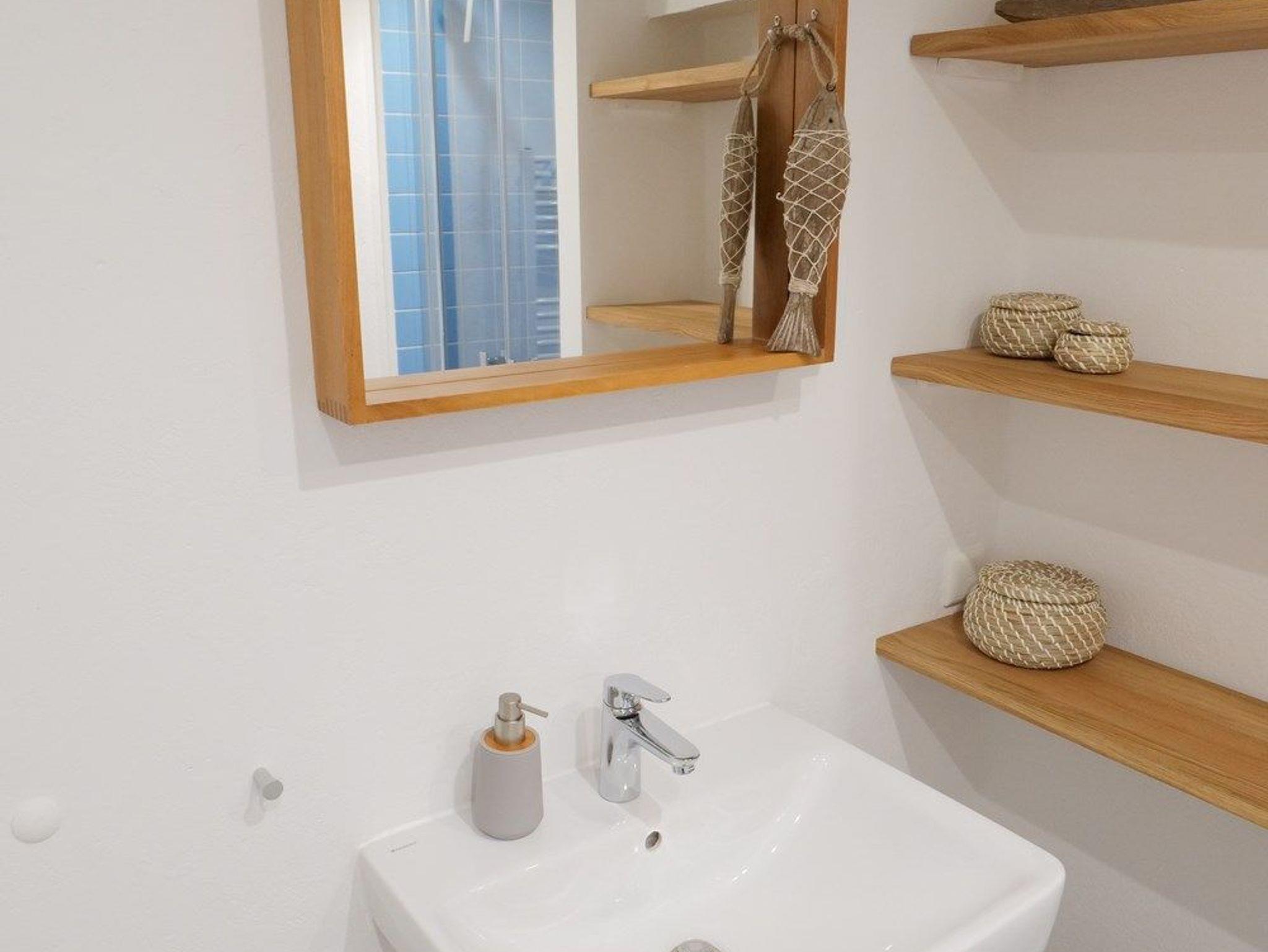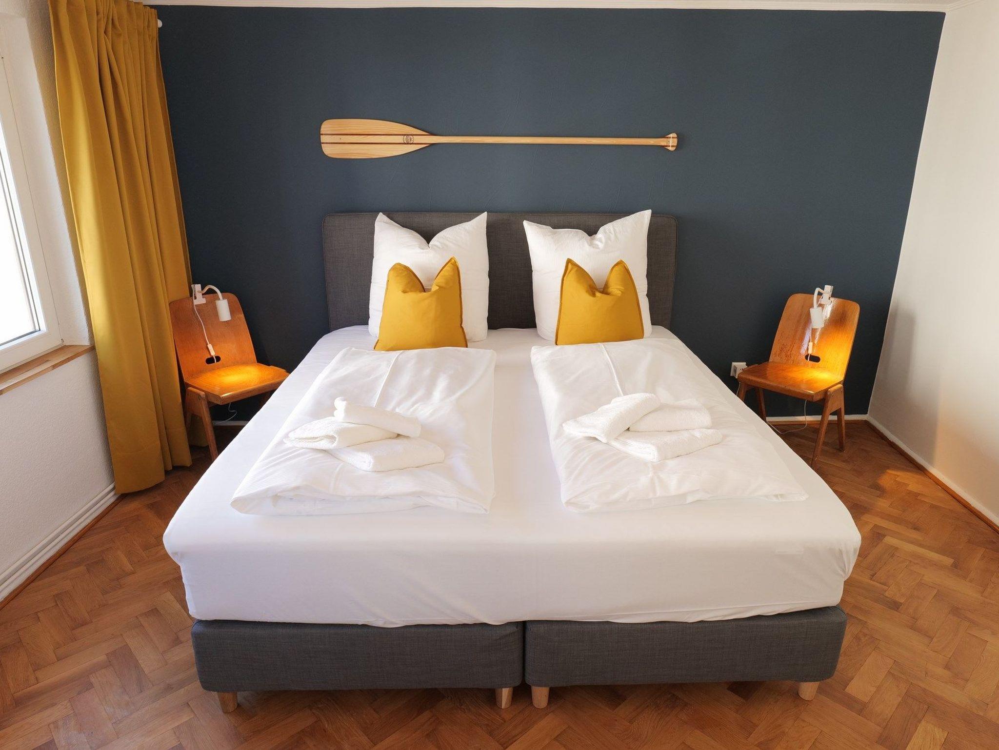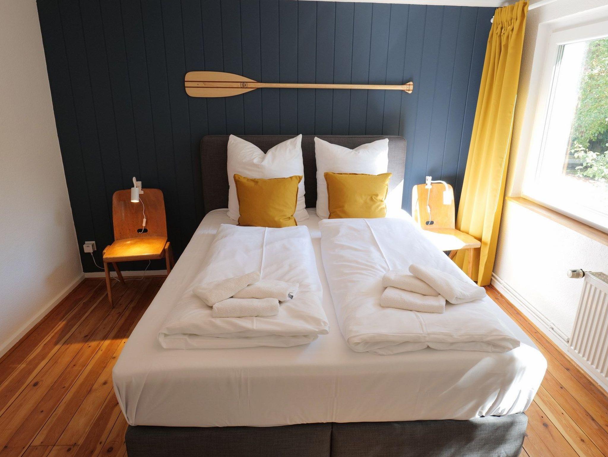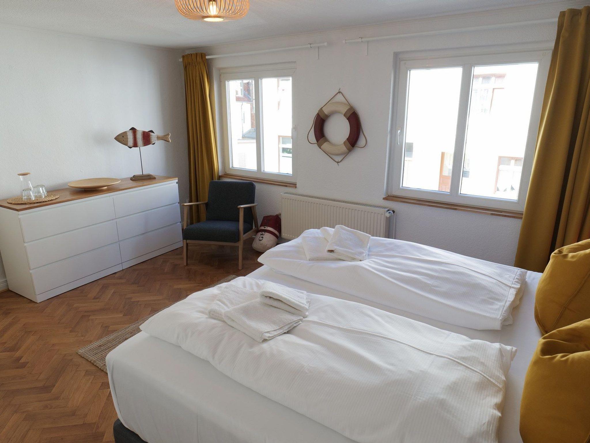 Bei der Sanierung und Einrichtung wurde bewusst auf den eigenen Charakter und die Geschichte des Haues Rücksicht genommen. Neben den komfortablen Boxspringbetten im Obergeschoss steht Ihnen im Wohnraum zusätzlich ein hochwertiges Schlafsofa zur Verfügung.