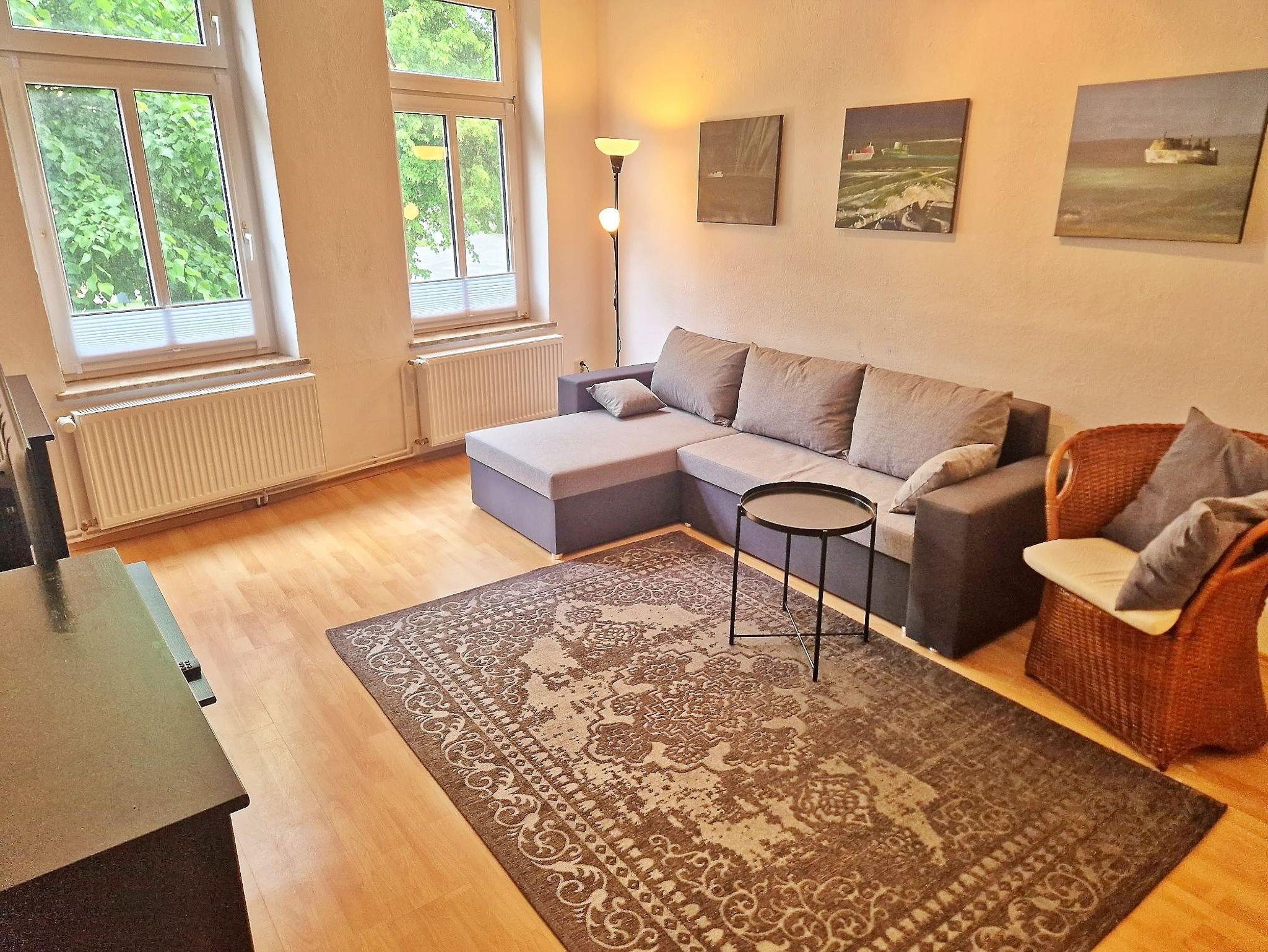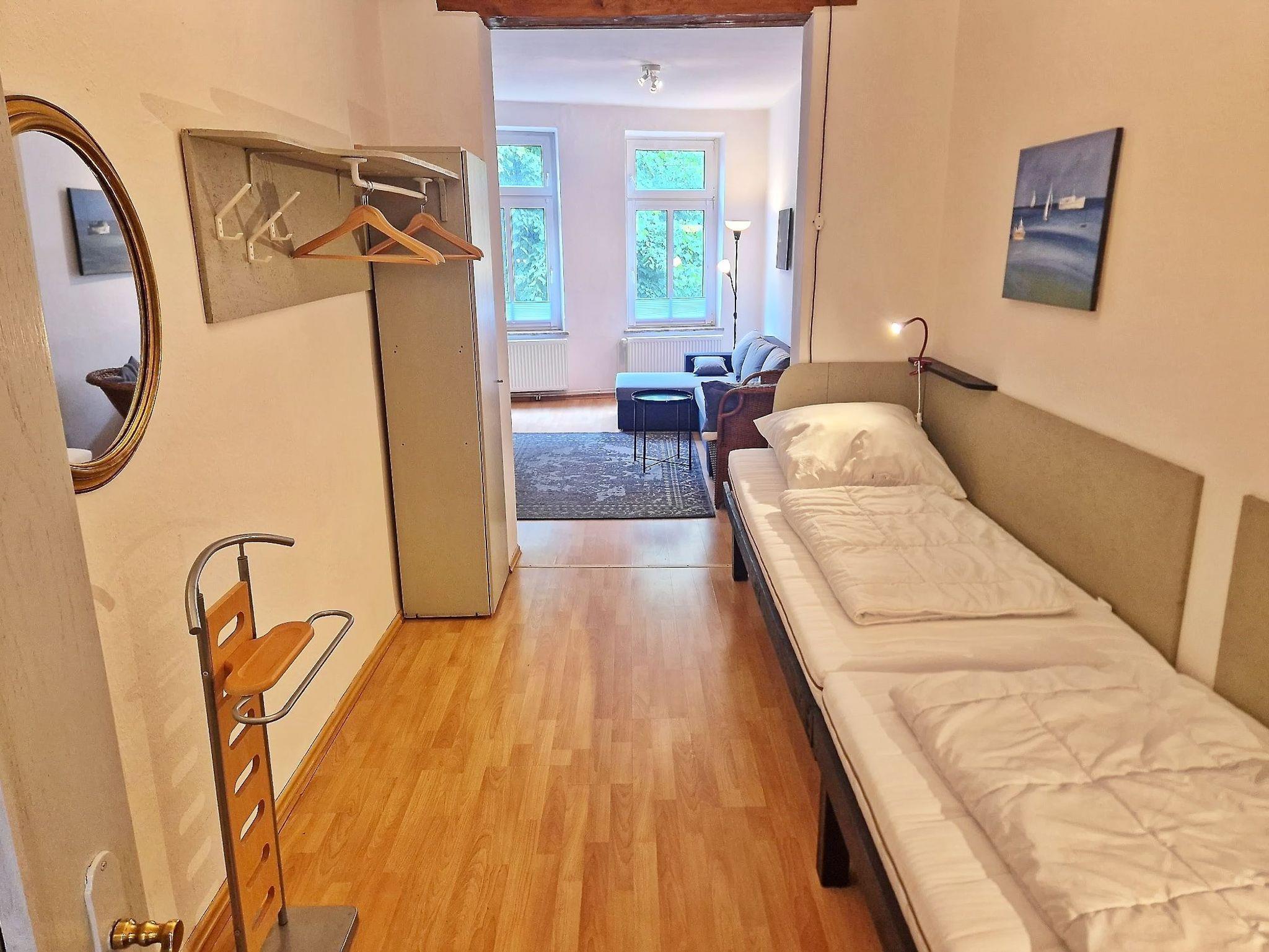 Die Wohnung ist mit allen Annehmlichkeiten und originellen Einzelmöbeln ausgestattet. An den Wänden hängen große und kleine Originalgemälde mit Wismar- und Ostseeassoziationen.