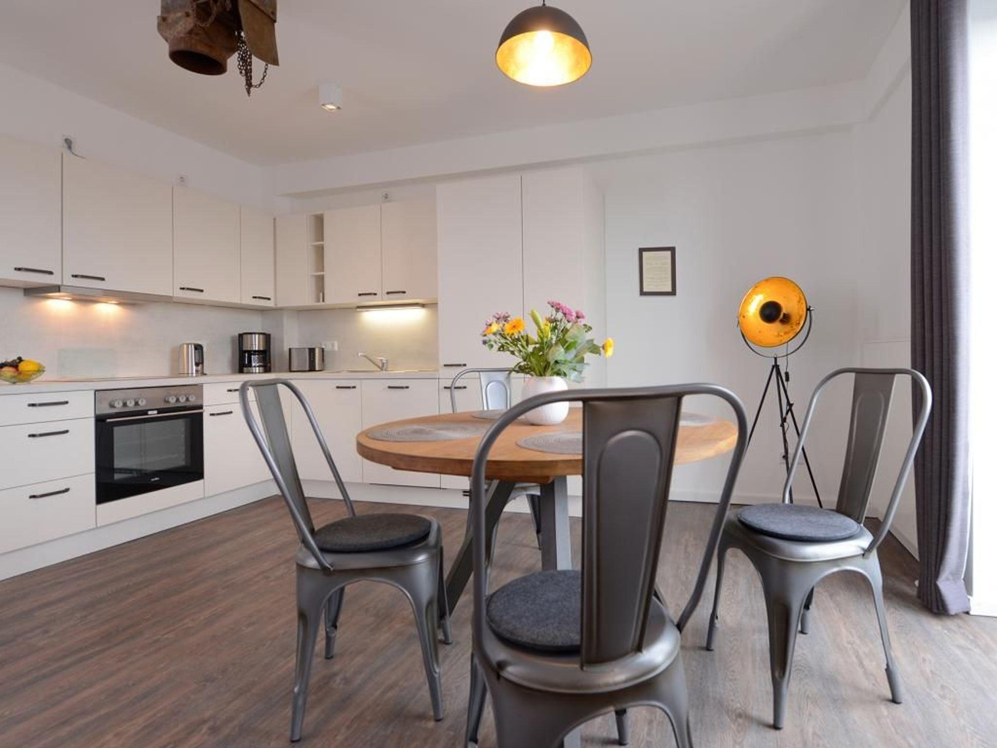 Das 2-Zimmer-Appartement verspricht einen Urlaub der Extraklasse für bis zu 4 Personen. In der 5. Etage gelegen, die leicht durch den Lift zu erreichen ist, bietet dieses exklusive Appartement einen unvergesslichen Urlaub. Die 55m² Wohnfläche sind sehr hochwertig ausgestattet. Der Wohn-/Essbereich mit Fernseher lädt zum Verweilen ein. Über den Wohnbereich gelangen Sie auf den Balkon mit einer spektakulären Aussicht. Die Küche verfügt über Mikrowelle, Geschirrspüler, Kaffeemaschine, Wasserkocher und diverse Kleingeräte. Das stilvoll eingerichtete Schlafzimmer sorgt für erholsame Stunden. Des Weiteren steht Ihnen ein Badezimmer zur Verfügung. Bei Anreise sind 2 Betten bezogen und Handtücher liegen für Sie bereit. WLAN steht Ihnen kostenfrei zur Verfügung. In unmittelbarer Nähe sind öffentliche Parkplätze vorhanden.