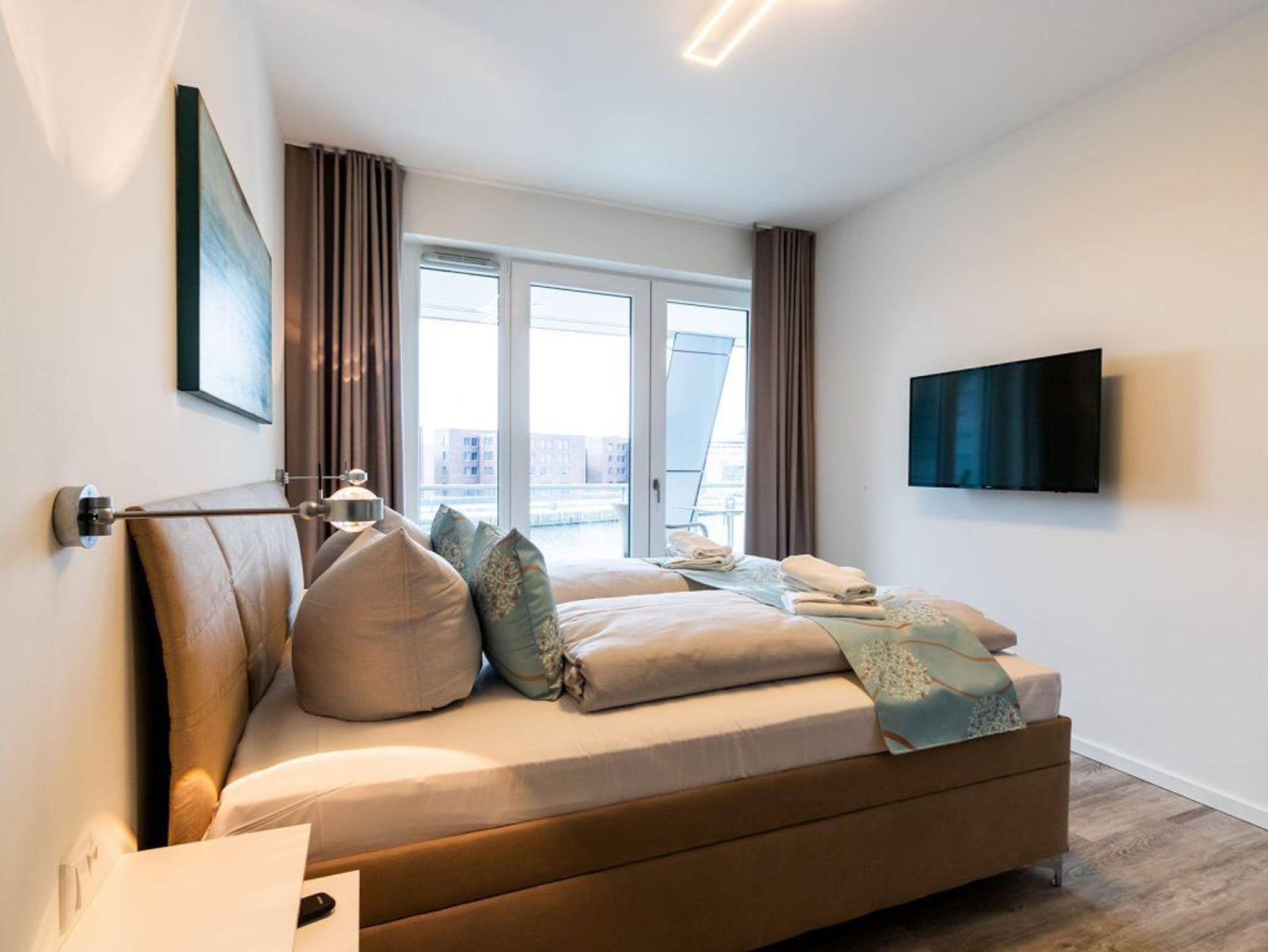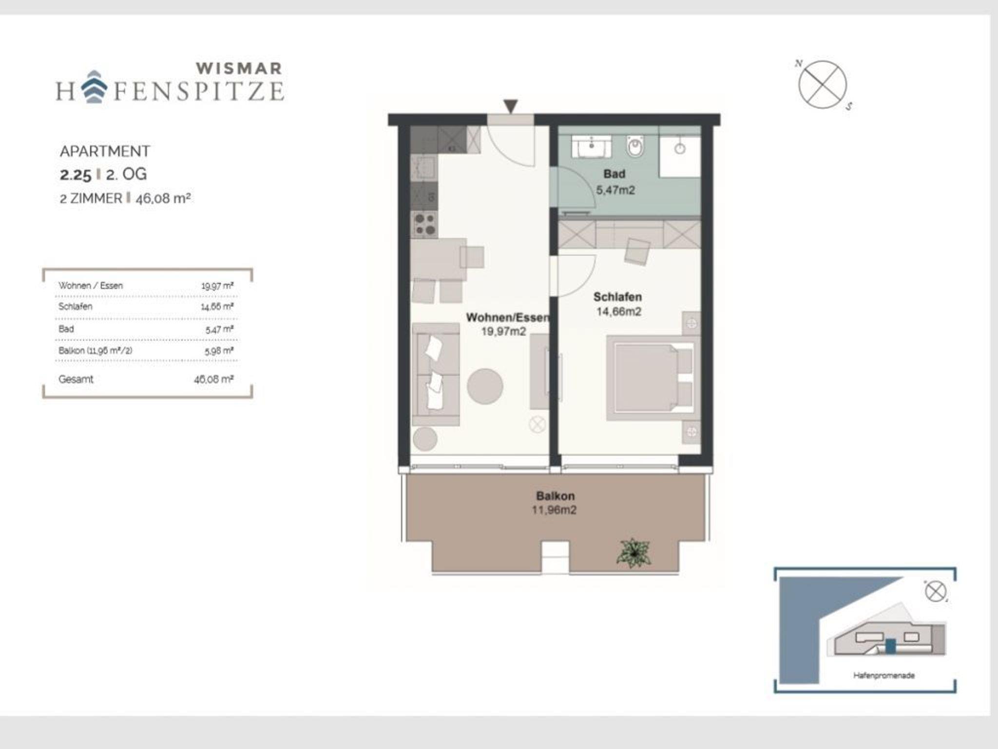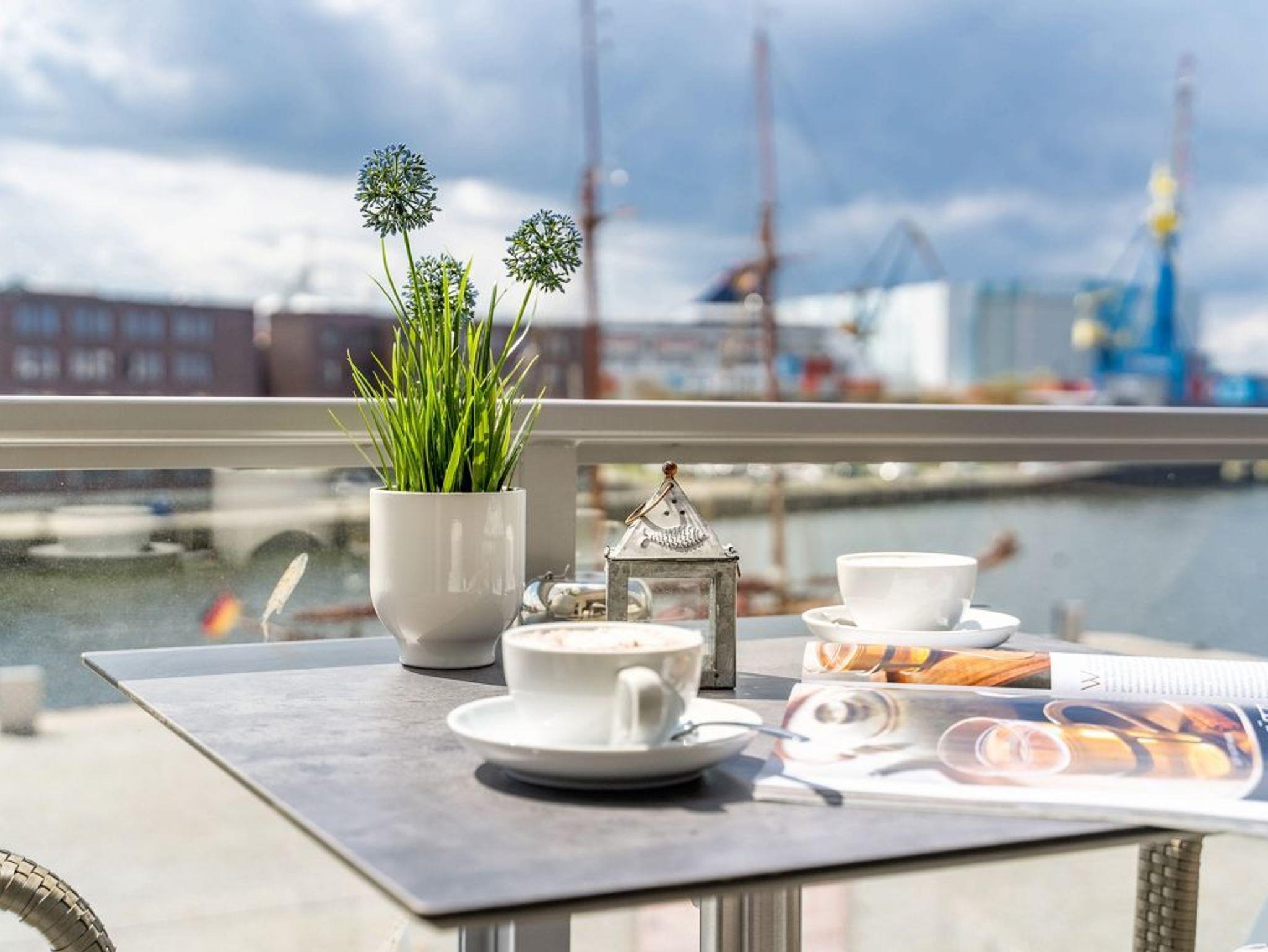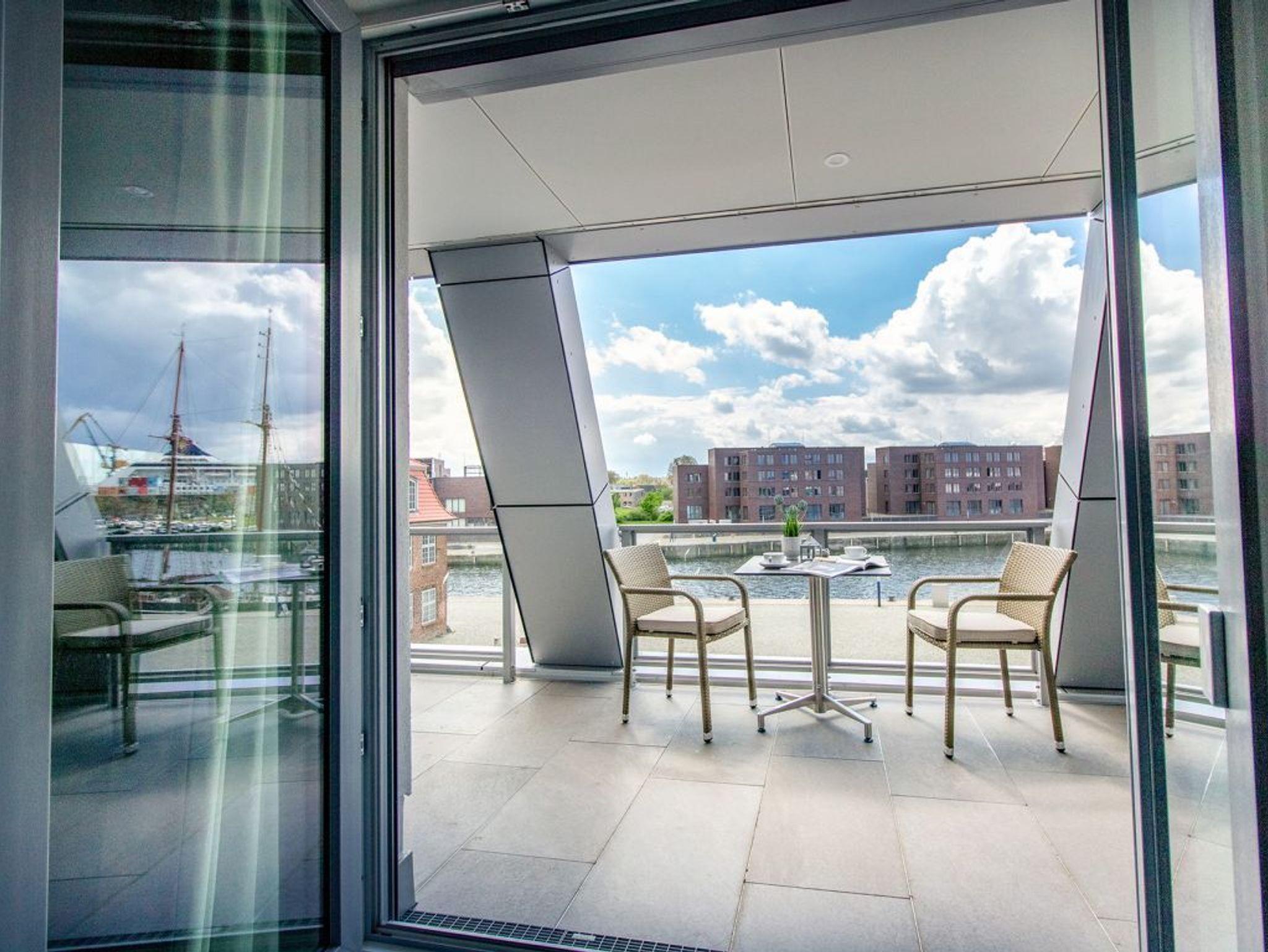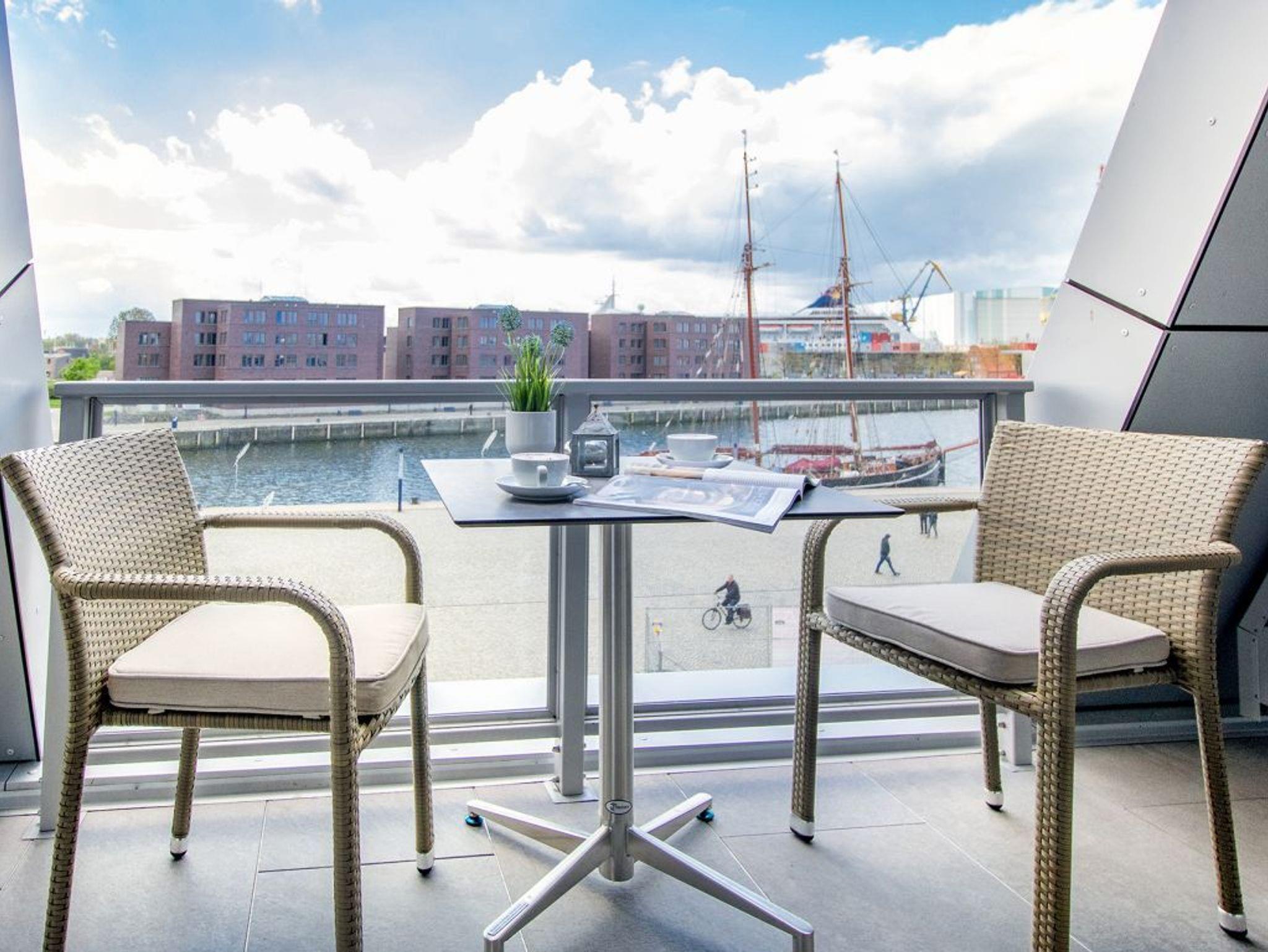 Hier lädt ein charmantes Hafennest zum Entspannen ein. Das sehr geschmackvolle 2-Zimmer-Appartement Hafenspitze 25 Seebrise befindet sich in der 2. Etage der Hafenspitze und ist mit einer Wohnfläche von 47qm ideal für den Urlaub zu zweit, maximal zu dritt. Mit dem Lift gelangen Sie bequem in das 2. Obergeschoss. Von der sonnigen Loggia, die saisonal möbliert ist, genießen Sie die Aussicht auf den lebendigen Hafen der Welterbestadt. Elektrisch bedienbare Außenrollos bieten sommerlichen Wärmeschutz.