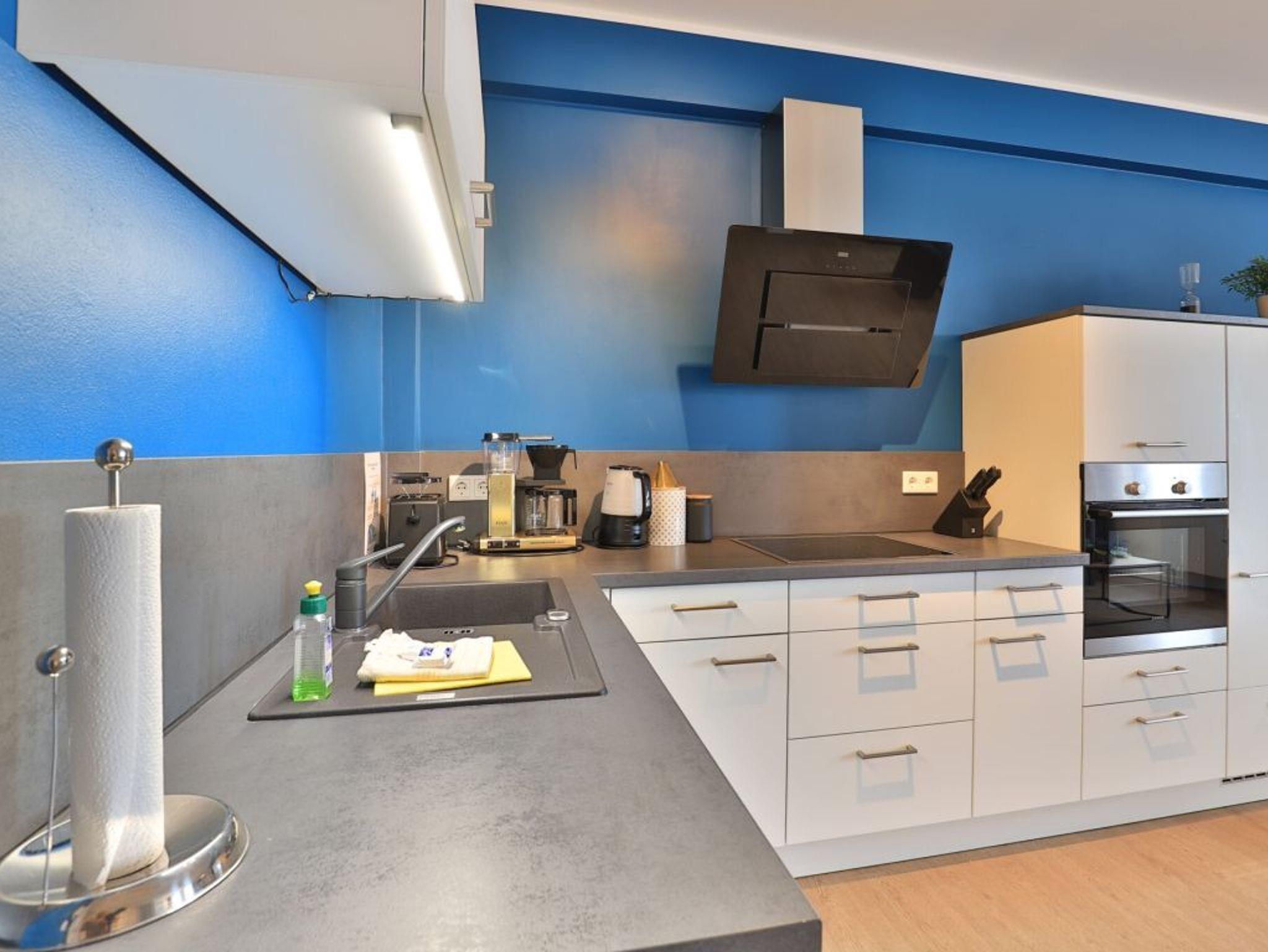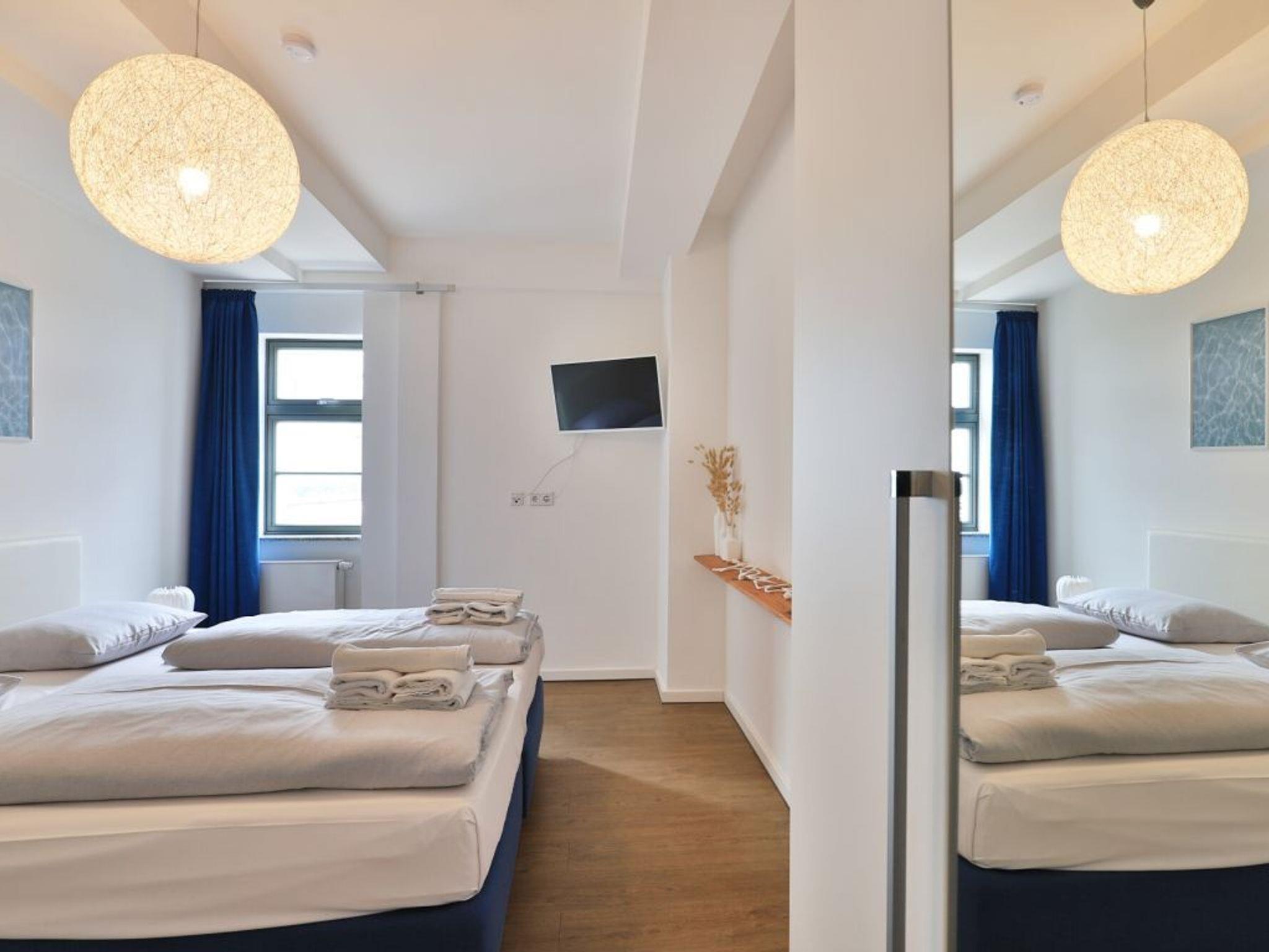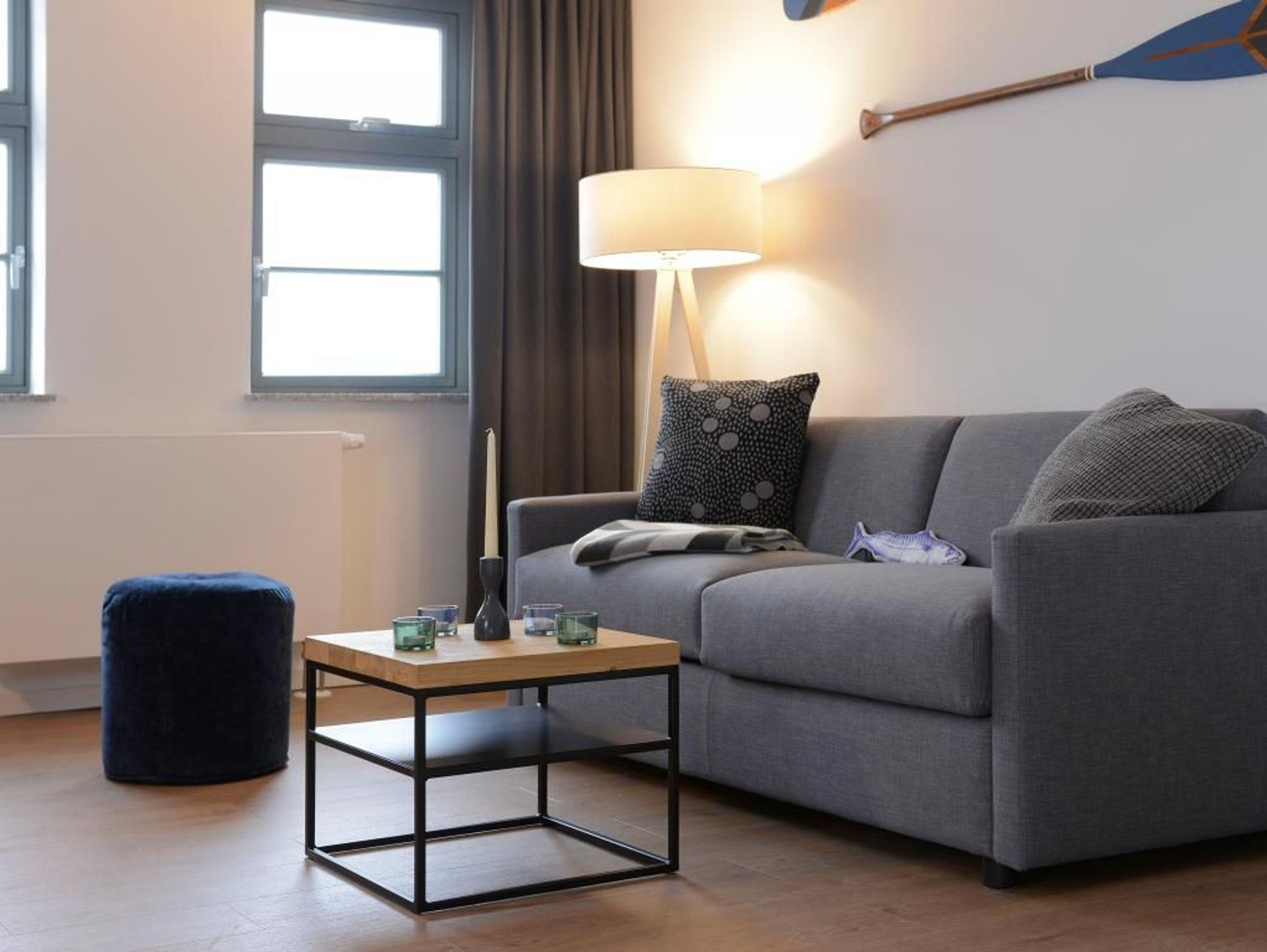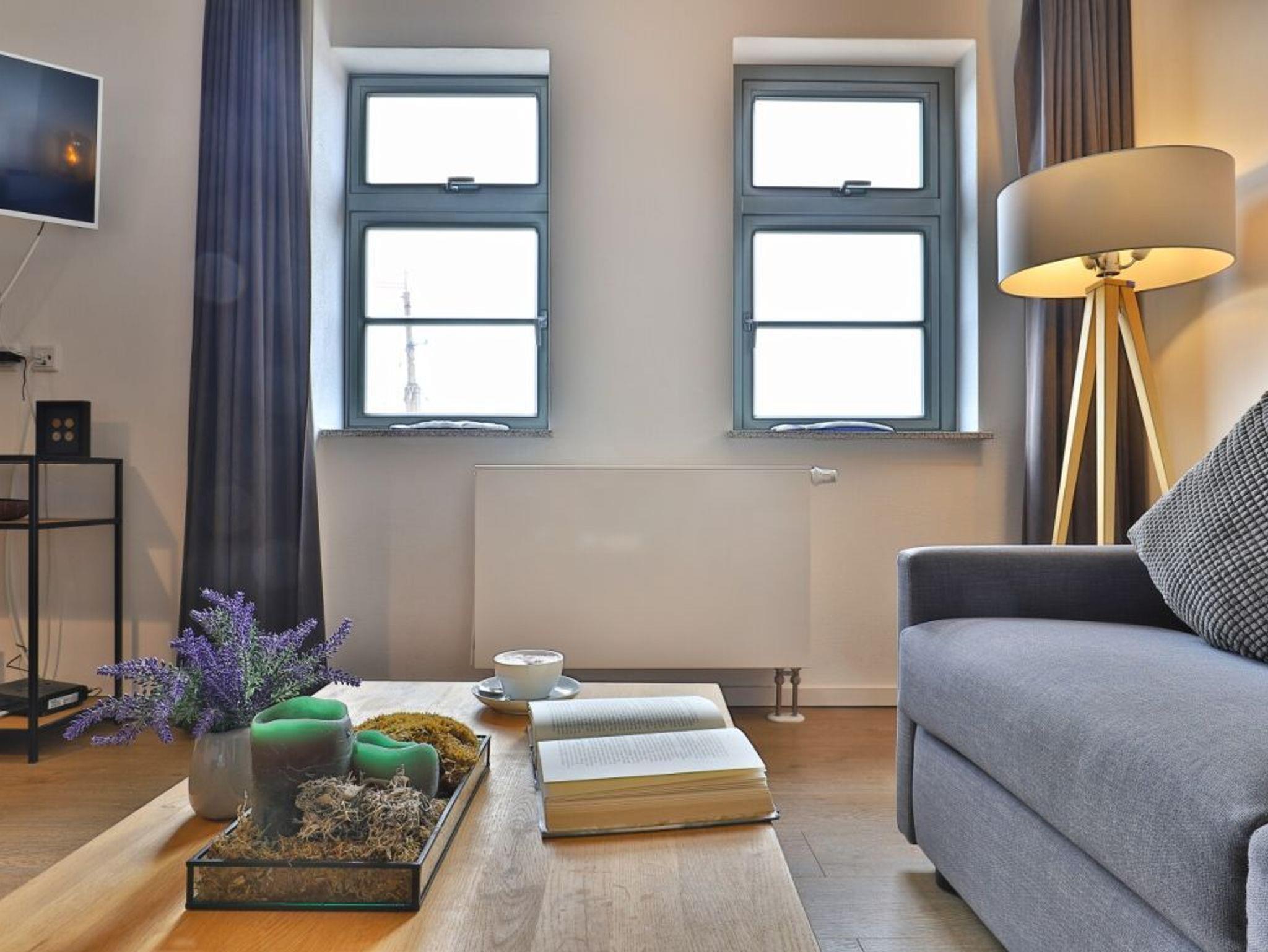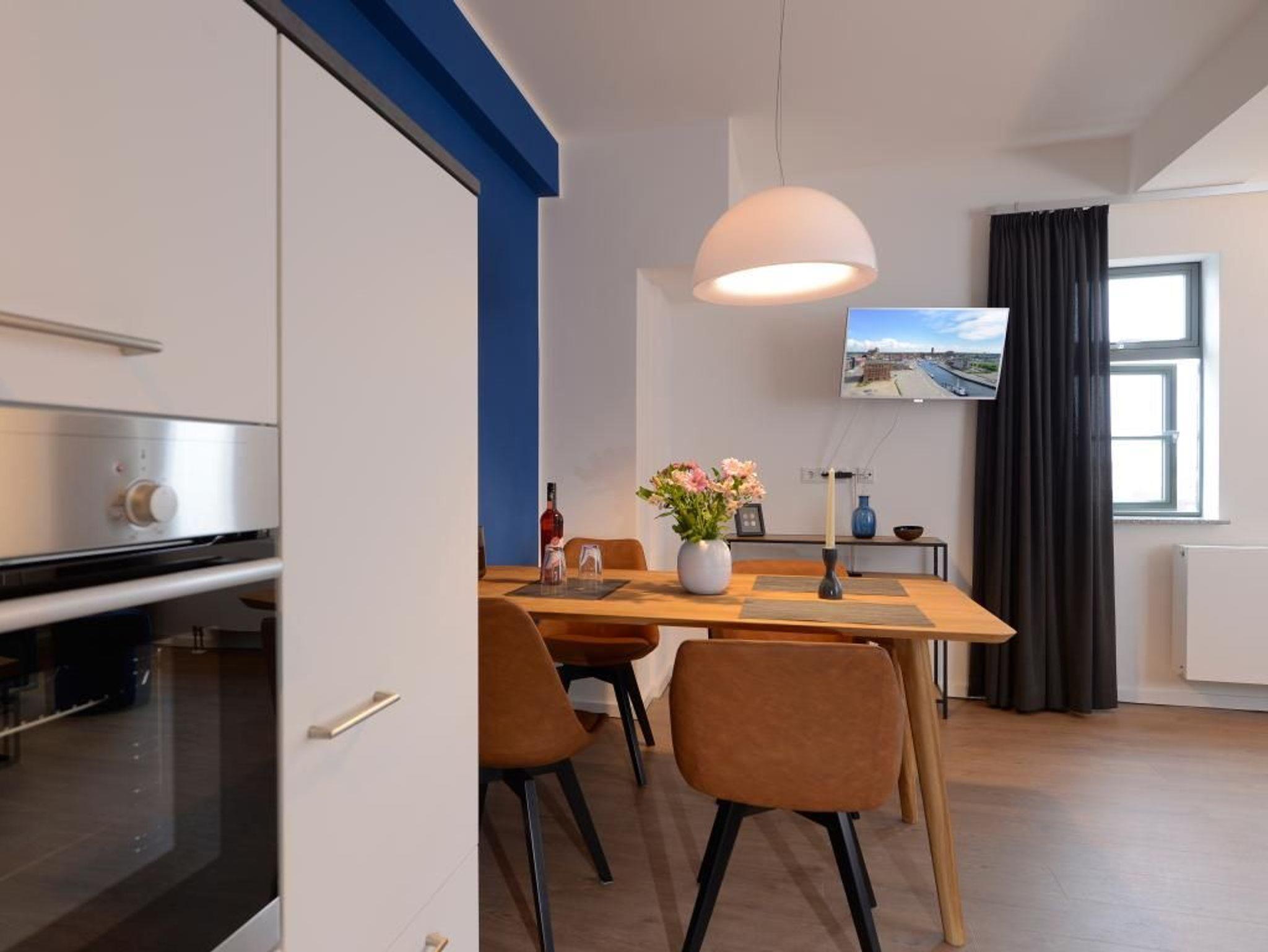 Durch den Lift lässt sich die 5. Etage leicht erreichen, in der dieses exklusive 2-Zimmer-Appartement liegt. Auf 48 m² Wohnfläche können bis zu 4 Personen einen unvergesslichen Urlaub verbringen. Der moderne Wohn-/Essbereich mit Fernseher und die Küche ist hochwertig und voll ausgestattet. In der Küche stehen Ihnen eine Mikrowelle, ein Geschirrspüler, eine Kaffeemaschine, ein Wasserkocher und vieles mehr zur Verfügung. Das stilvoll eingerichtete Schlafzimmer mit einem weiteren TV-Gerät sorgt für entspannte Nächte. Des Weiteren verfügt das Appartement über ein hochwertig ausgestattetes Duschbad. Bei Anreise sind 2 Betten bezogen und Handtücher liegen für Sie bereit. WLAN steht Ihnen kostenfrei zur Verfügung. Ein Stellplatz (5 Euro pro Tag) befindet sich im Parkhaus ca. 350 m vom Objekt entfernt.