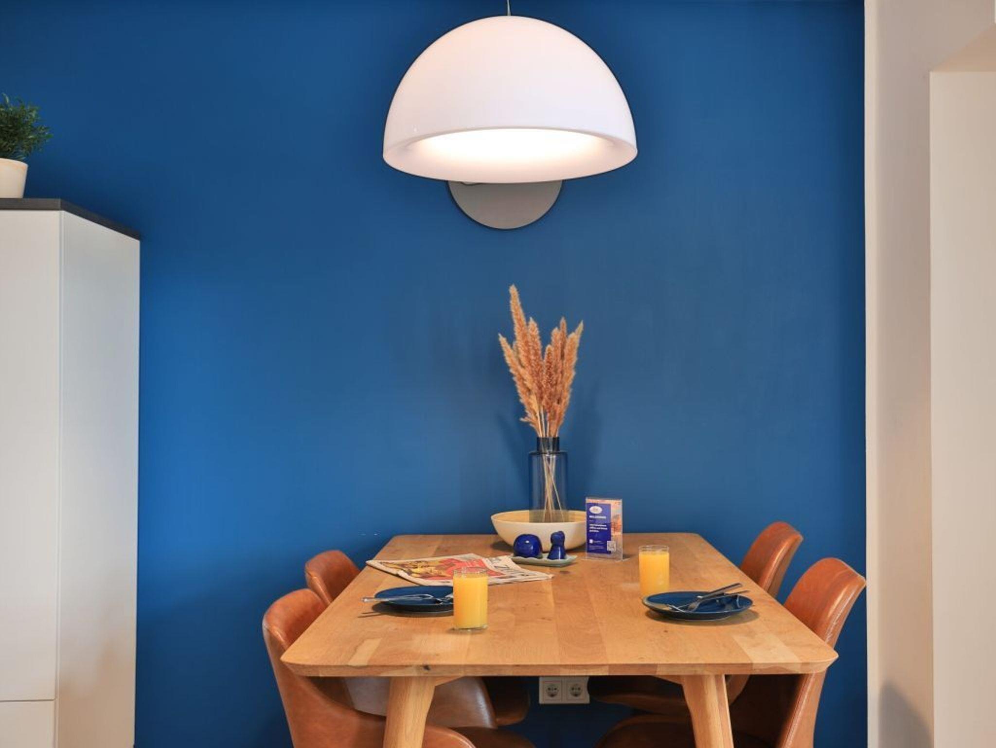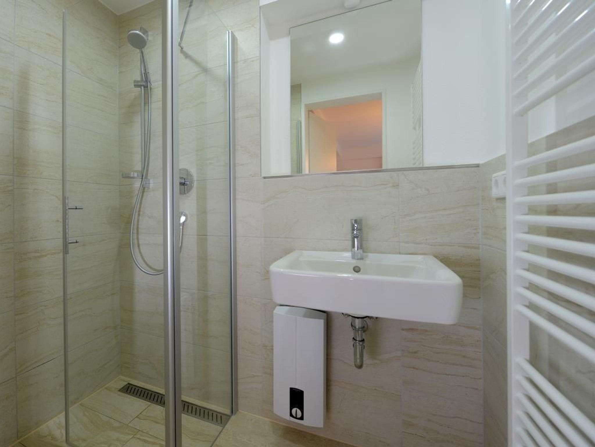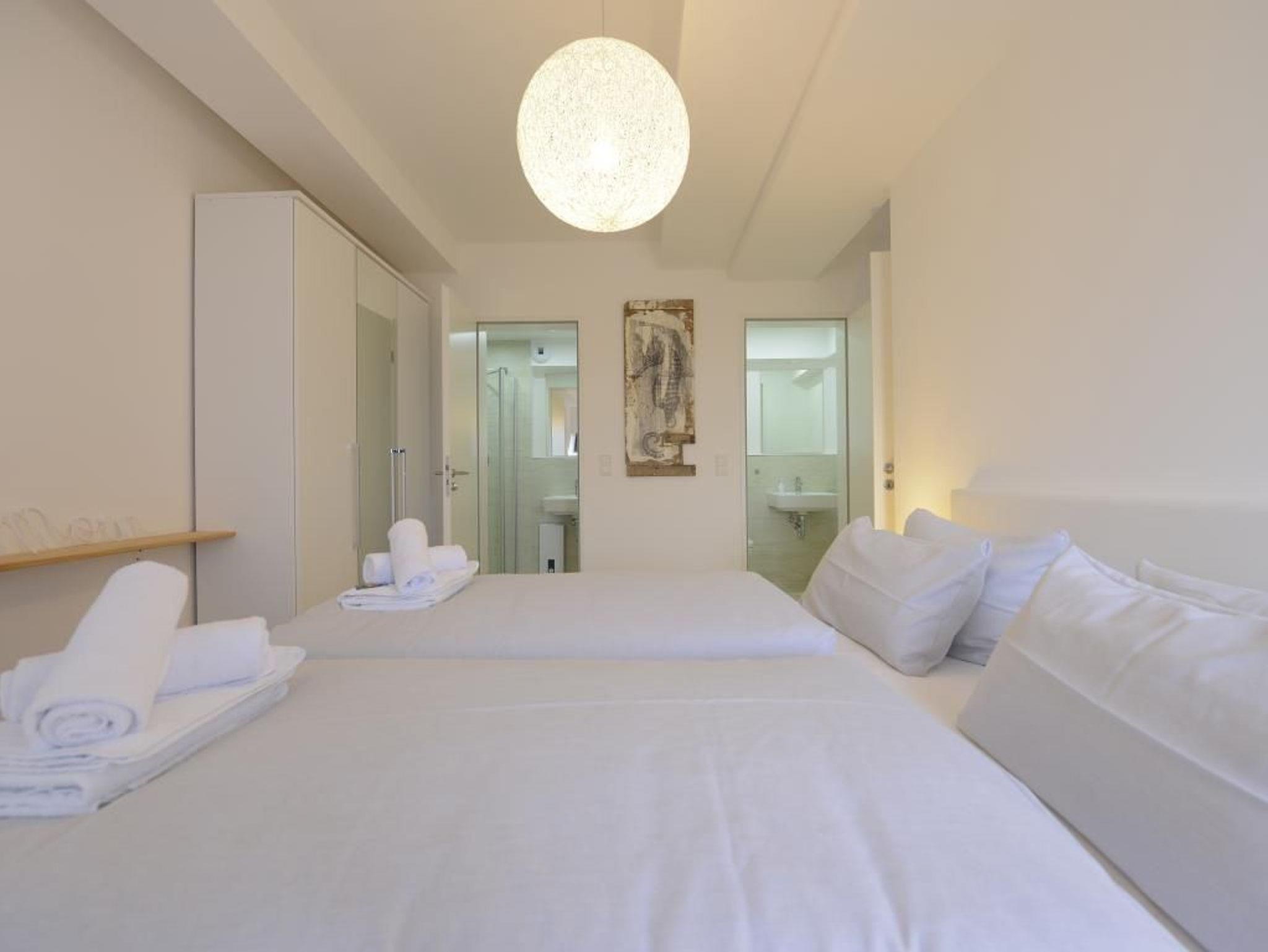 Appartementhaus mit 48 Appartements. Durch den Lift lässt sich die 5. Etage leicht erreichen, in der dieses exklusive 2-Zimmer-Appartement liegt. Auf 48 m² Wohnfläche können bis zu 4 Personen einen unvergesslichen Urlaub verbringen. Der moderne Wohn-/Essbereich mit Fernseher und die Küche ist hochwertig und voll ausgestattet. In der Küche stehen Ihnen eine Mikrowelle, ein Geschirrspüler, eine Kaffeemaschine, ein Wasserkocher und vieles mehr zur Verfügung. Das stilvoll eingerichtete Schlafzimmer mit einem weiteren TV-Gerät sorgt für entspannte Nächte. Des Weiteren verfügt das Appartement über ein hochwertig ausgestattetes Duschbad. Bei Anreise sind 2 Betten bezogen und Handtücher liegen für Sie bereit. WLAN steht Ihnen kostenfrei zur Verfügung.