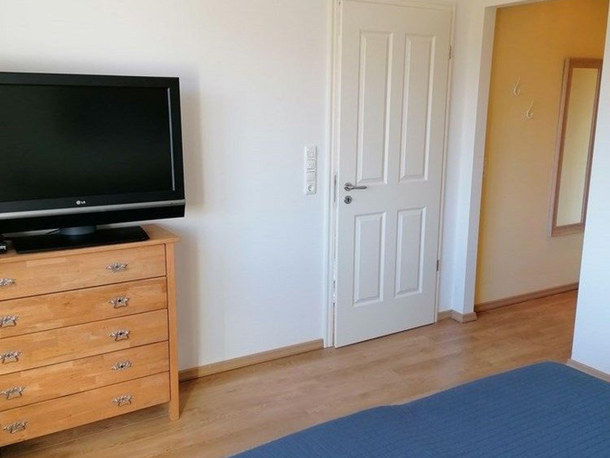 - Schlafzimmer mit Doppelbett, TV und begehbaren Kleiderschrank