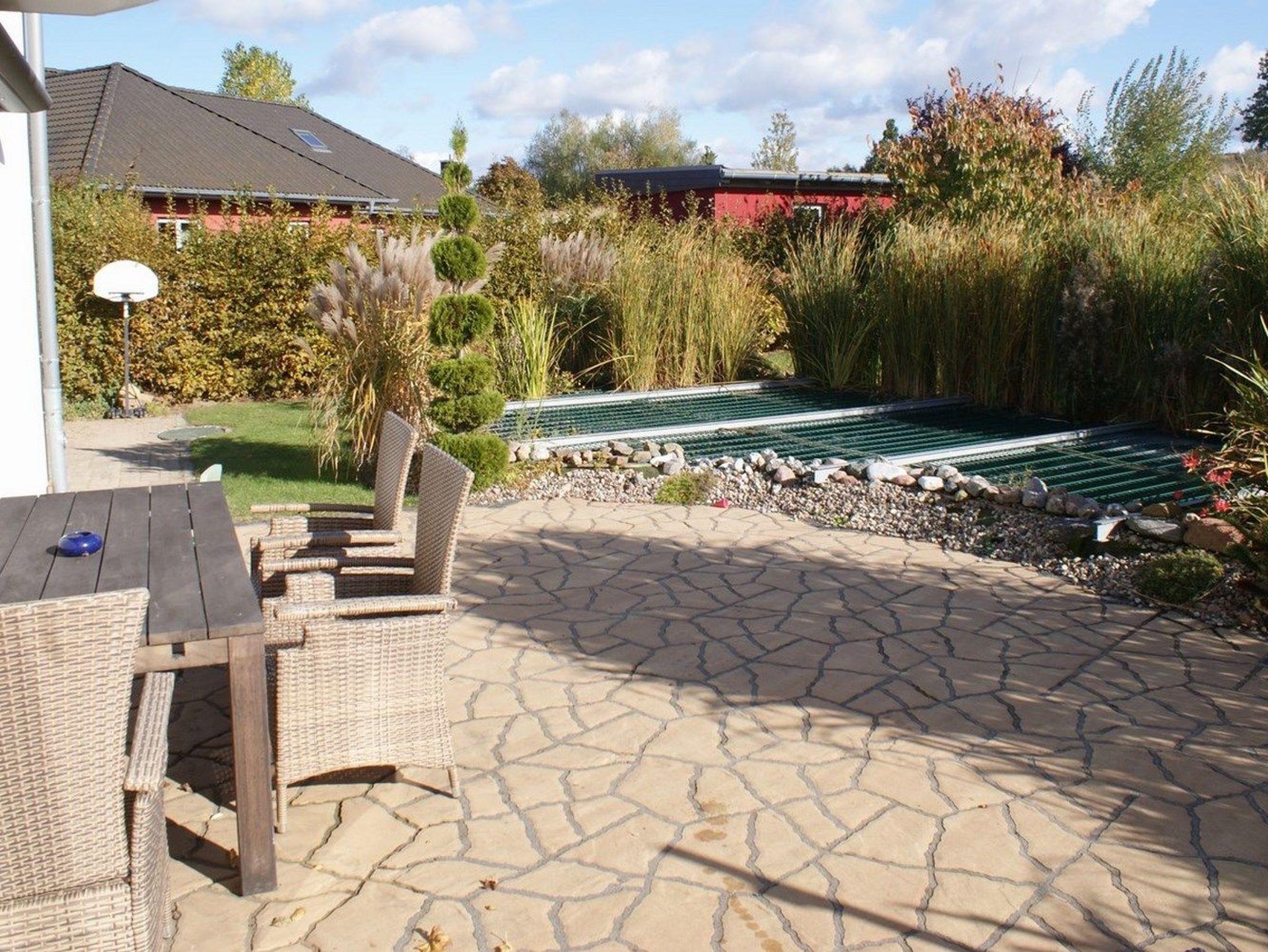 - große Terrasse mit Essbereich, Sonnenliege, Gartenteich