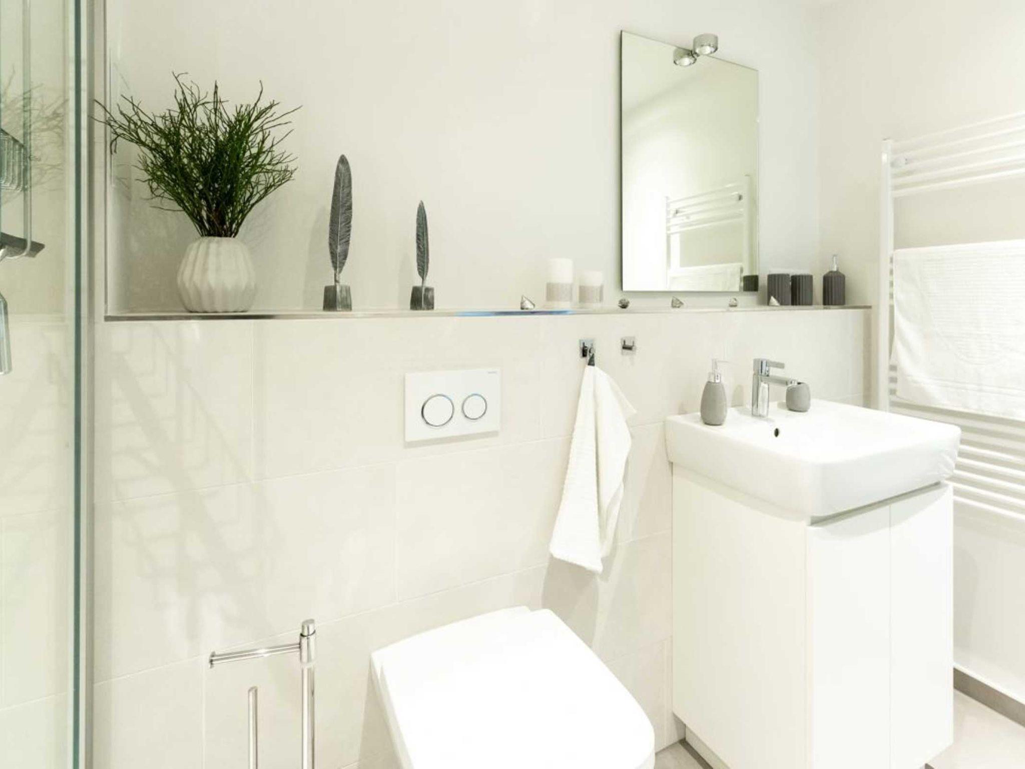Eines der Schlafzimmer bietet ebenfalls einen Zugang zum Balkon. Selbstverständlich erwartet Sie in dieser Wohneinheit auch ein modernes Badezimmer mit ebenerdiger Dusche, Waschtisch, WC, Handtuchheizkörper und Fußbodenheizung. Wir möchten an diese Stelle darauf aufmerksam machen, dass es sich bei diesem Angebot um eine Nichtraucherwohnung handelt. Bei Ihrer Anreise sind die Betten als inklusive Leistung für 2 Personen bereits bezogen und auch Hand/ Duschtücher liegen schon bereit.