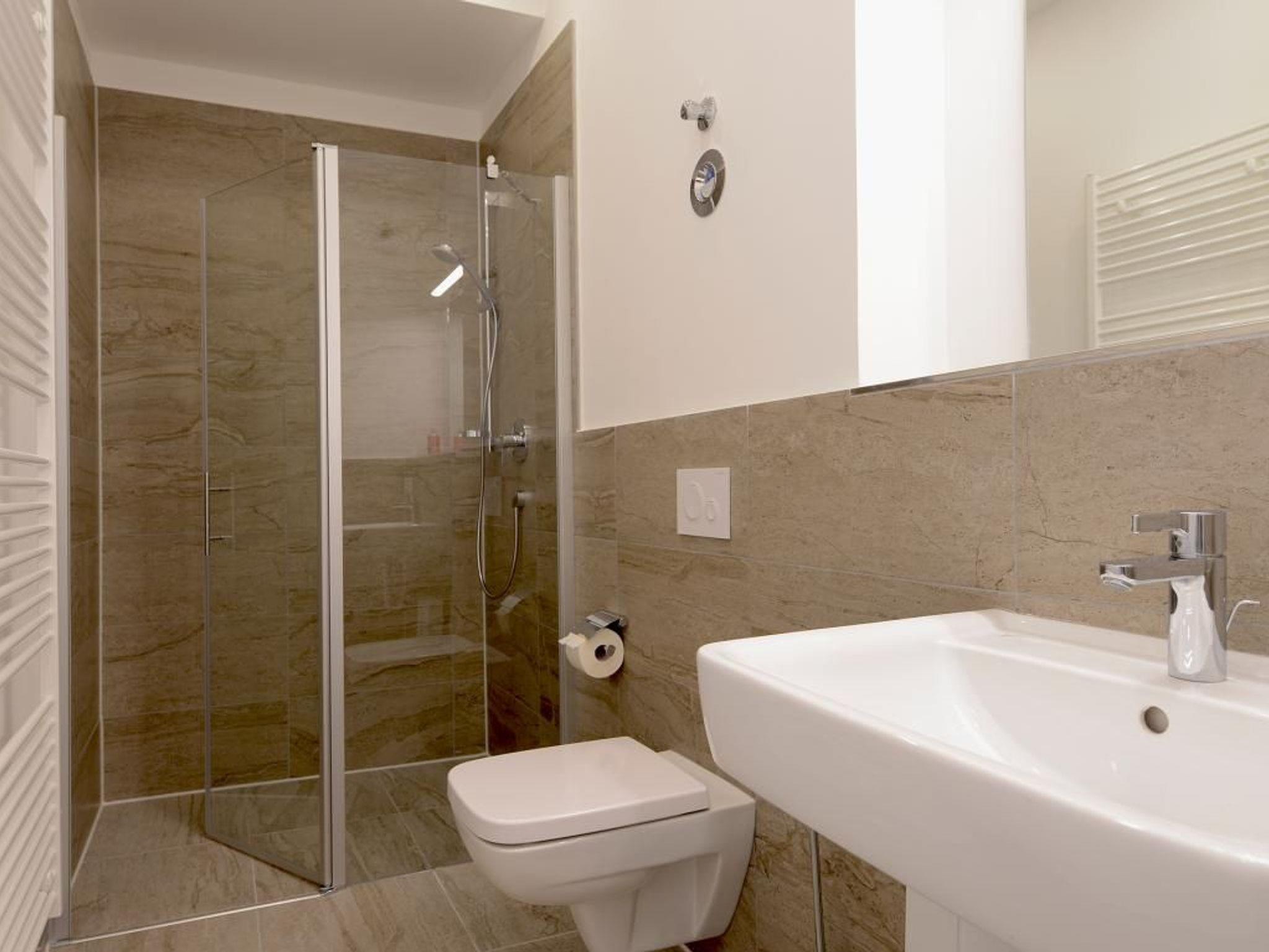 Appartementhaus mit 48 Appartements. Das in der 7. Etage gelegene Luxusappartement verfügt über 81m² und bietet für 6 Personen einen unvergesslichen Urlaub. Das modern eingerichtete 3-Zimmer-Appartement lässt sich durch den Lift ganz einfach erreichen. Die voll ausgestattete Küche ist geschickt in den hellen Wohn-/ Essbereich mit Fernseher integriert. 2 separate modern eingerichtete Schlafzimmer, sowie ein elegantes Badezimmer mit Badewanne stehen Ihnen zur Verfügung. Auf der Dachterrasse mit traumhafter Kulisse können Sie den Abend ausklingen lassen. Bei Anreise sind 2 Betten bezogen und Handtücher liegen für Sie bereit. WLAN steht Ihnen kostenfrei zur Verfügung.