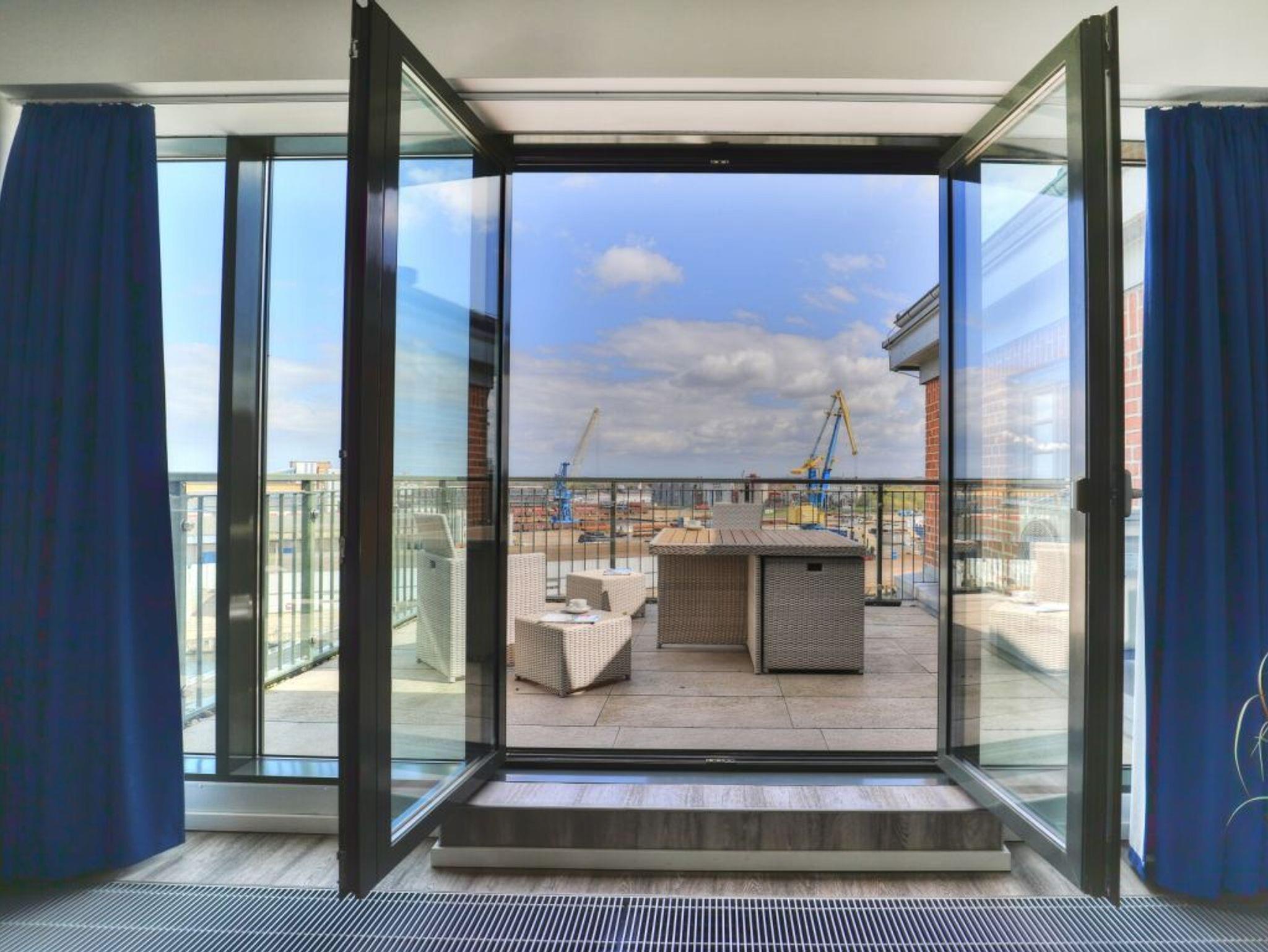 Direkt an der Spitze des Wismarer Hafens steht dieses exklusive Gebäude mit 48 luxuriösen Ferienappartements und Lift. Der ehemalige Getreidespeicher wurde 2018 komplett saniert.