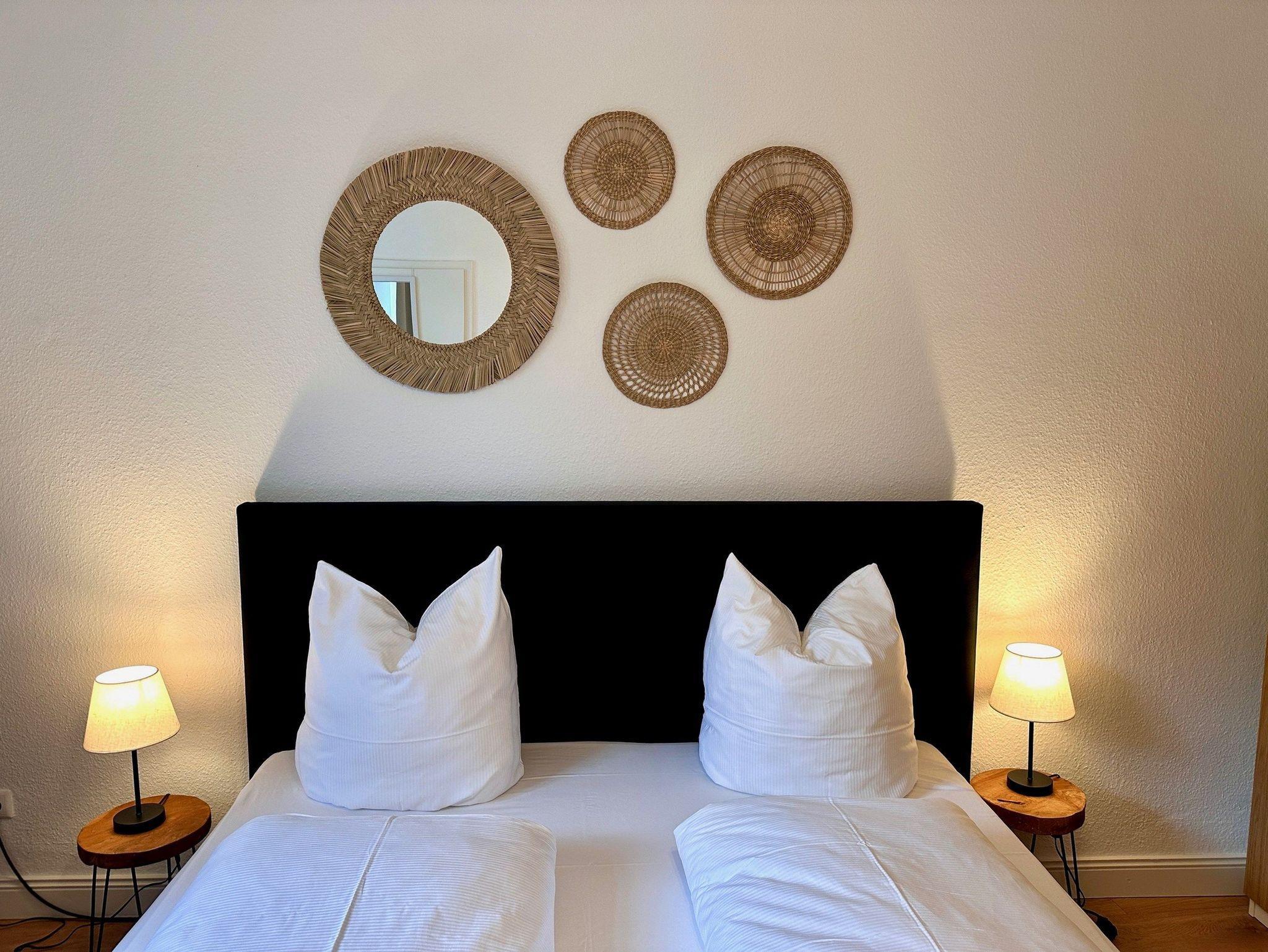 • 1 getrennes Schlafzimmer mit großem Boxspringbett (1,80 x 2,00 m), sowie ausreichend Stauraum für Ihre Kleidung.