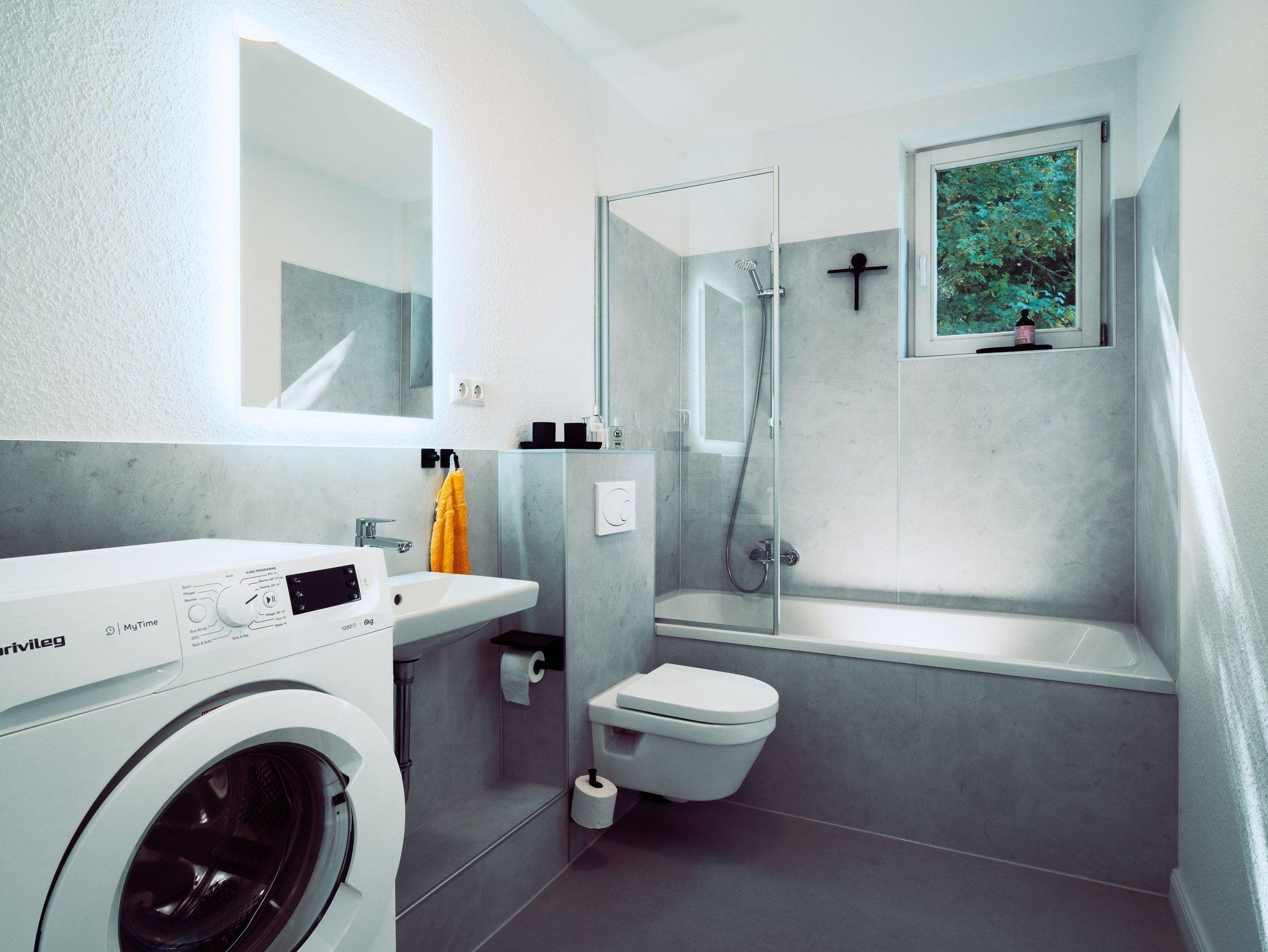 - Das Badezimmer ist mit einer Badewanne mit Duschfunktion und einem WC ausgestattet auch eine Waschmaschine steht Ihnen hier zur Verfügung.