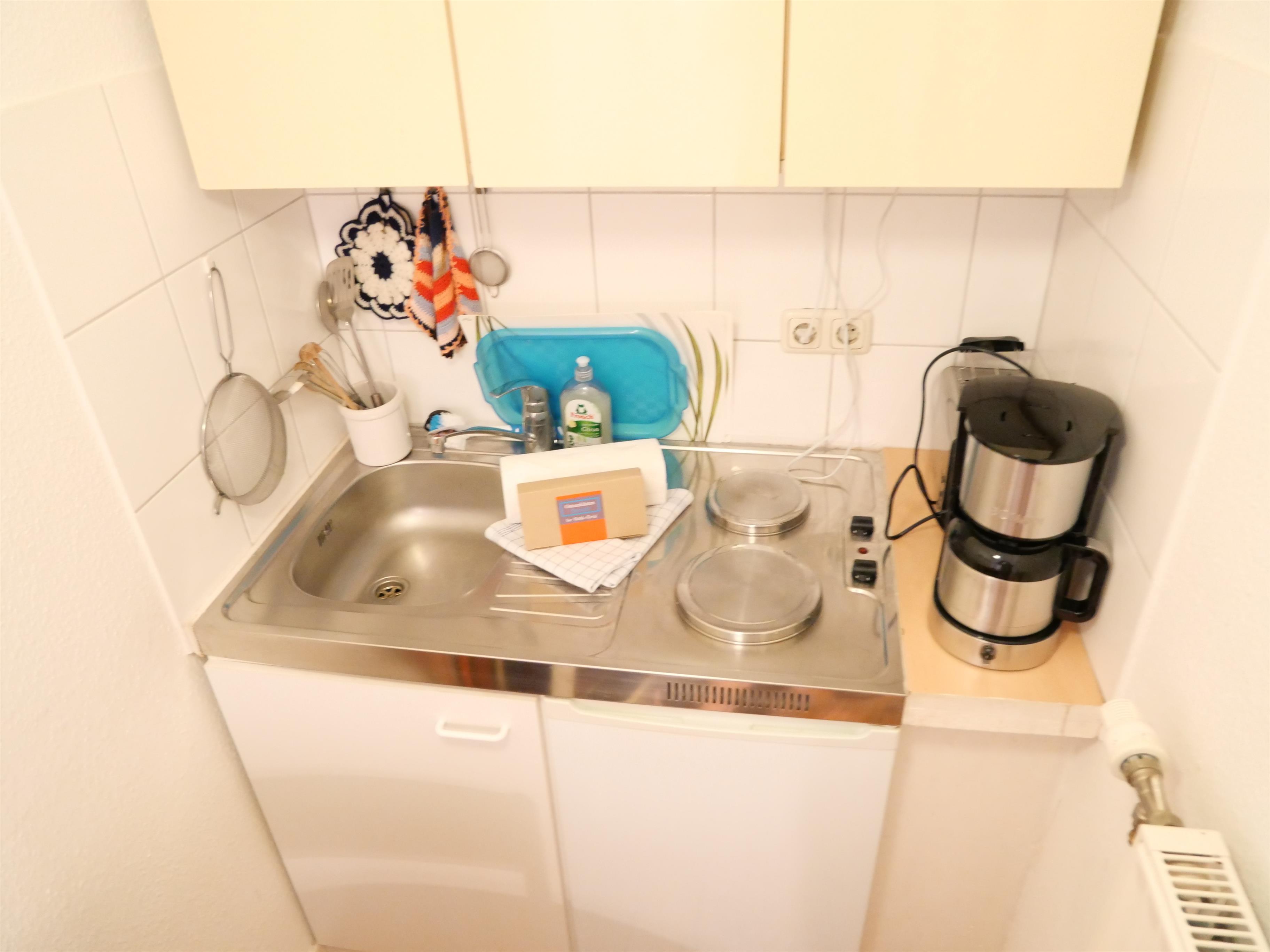 Ferienwohnung gehören Wohnzimmer, Schlafzimmer und eine Pantry-Küche. Das