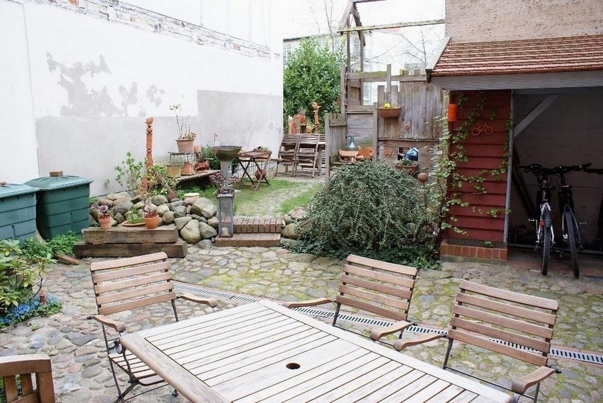 - Sitzplatz mit Gartenmöbeln auf dem Grundstück