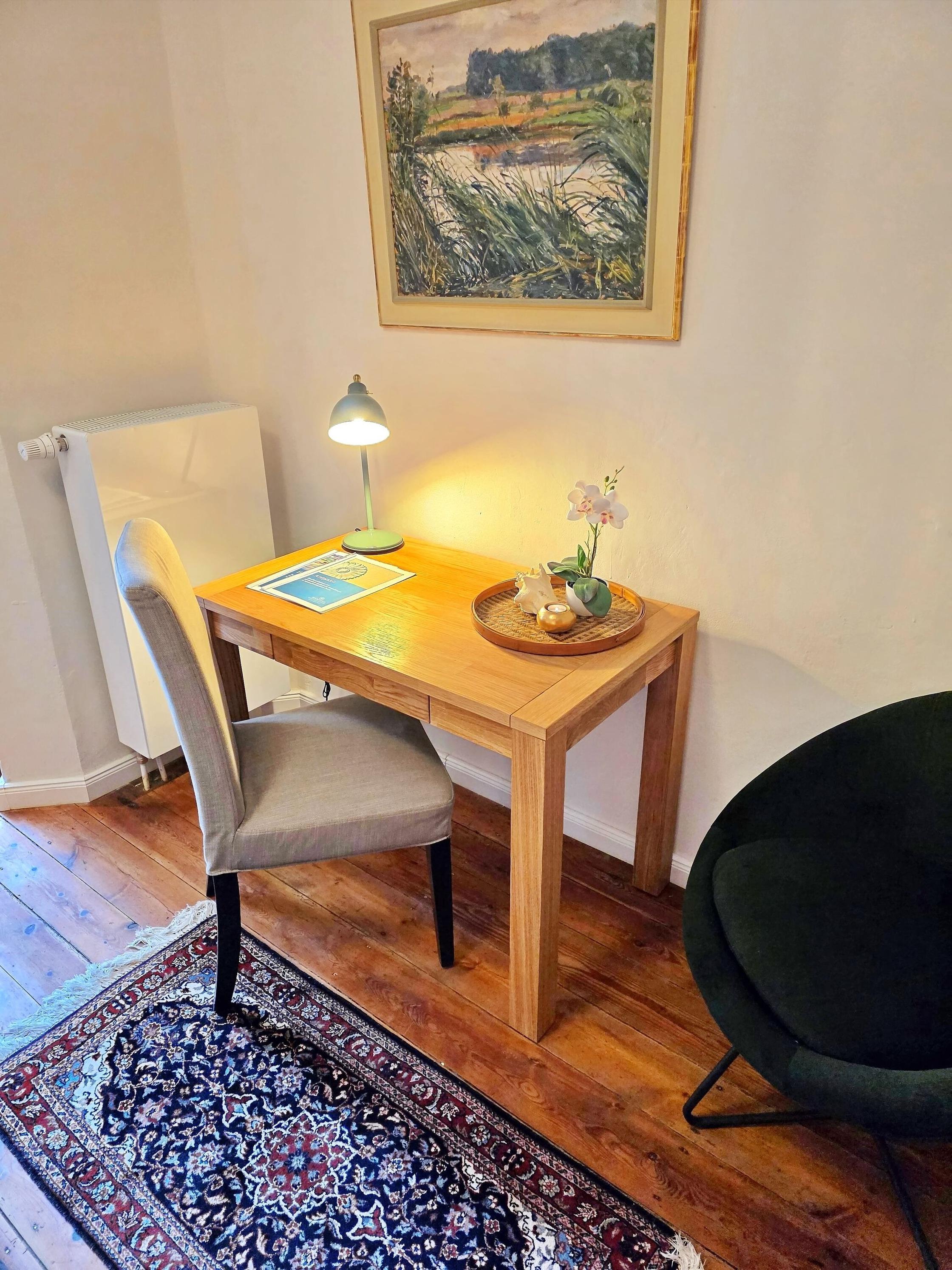 ? Schlafzimmer mit Doppelbett und Arbeitsplatz