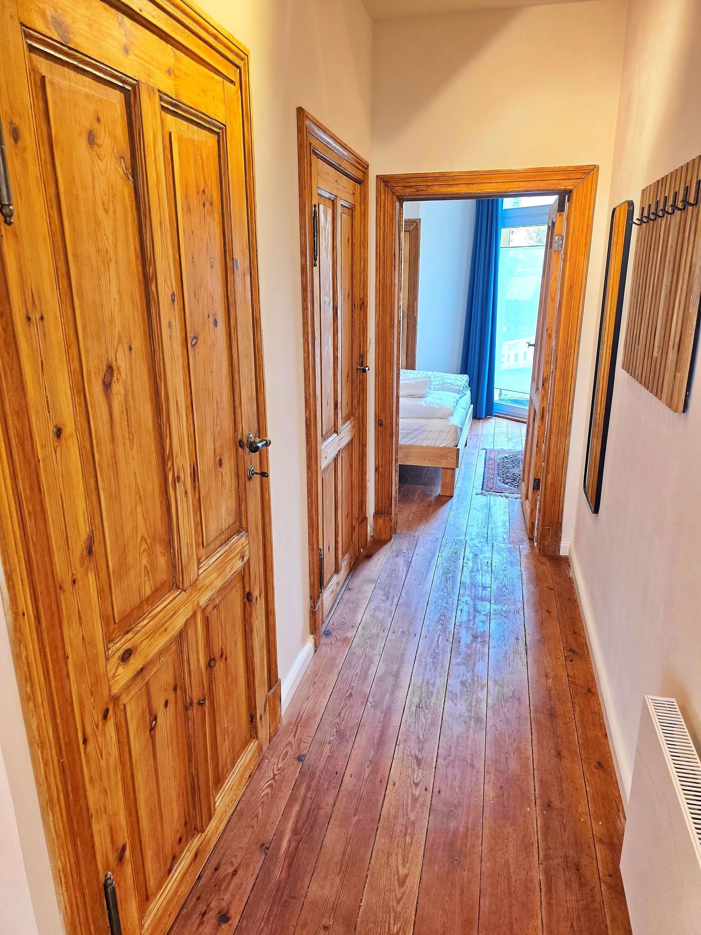 Über den Flur gelangen Sie in zwei begehbare Kleiderschränke/Räume, die Ihnen viel Stauraum für Kleidung, Gepäck und persönliche Dinge bieten – eine Seltenheit in Altstadtwohnungen und ein echtes Komfort-Plus.