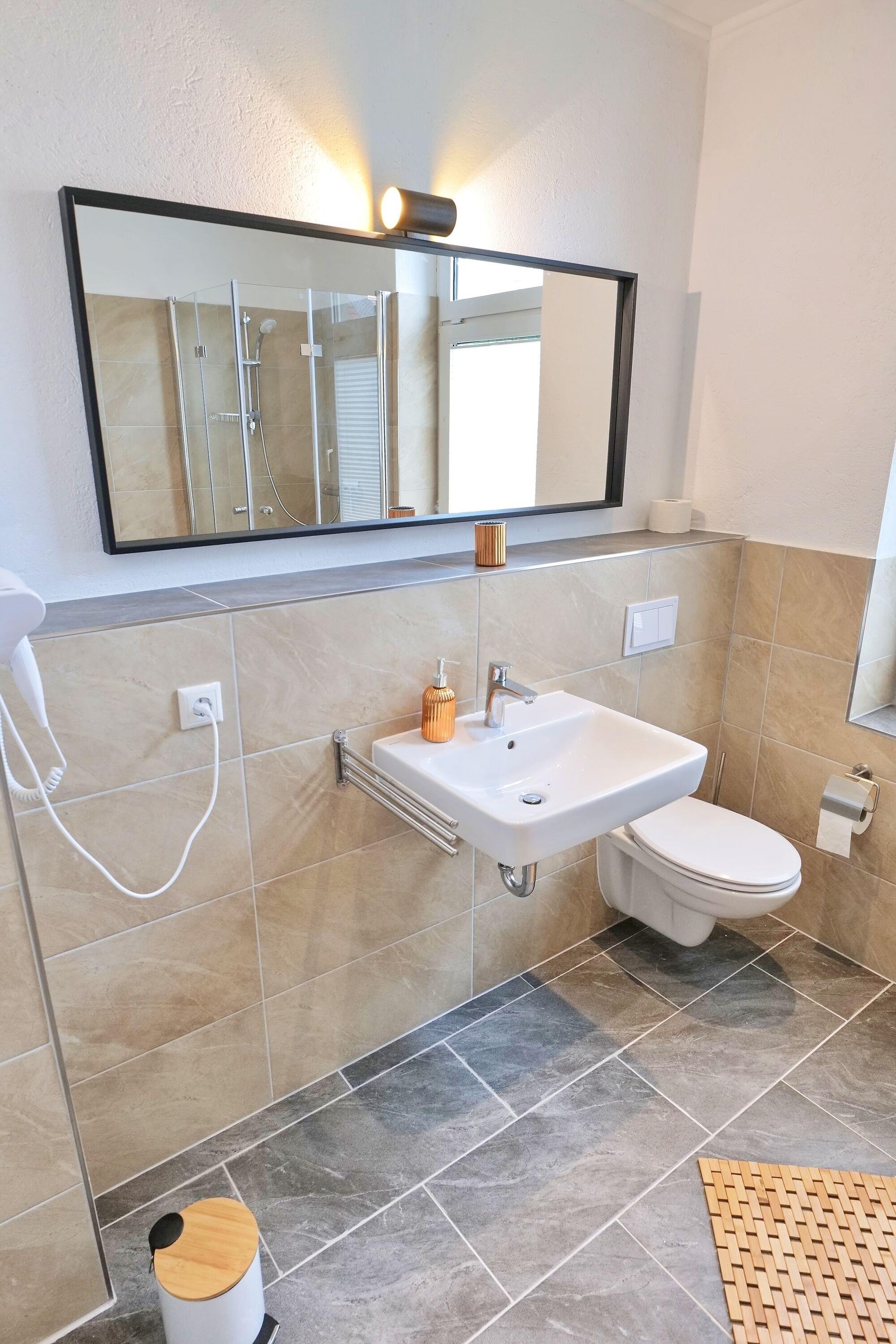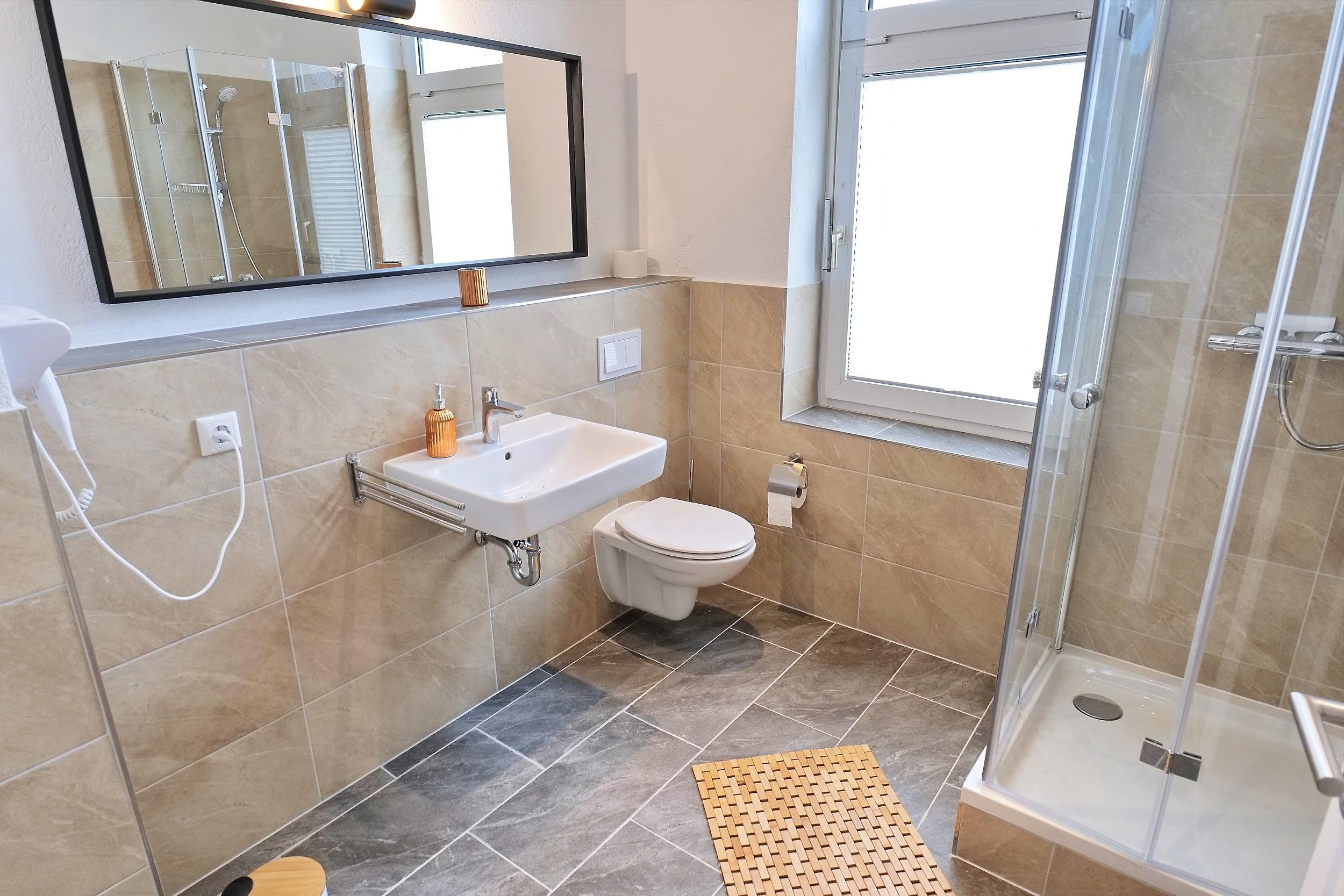 - Duschbad mit Dusche, WC, Spiegel und Ablage