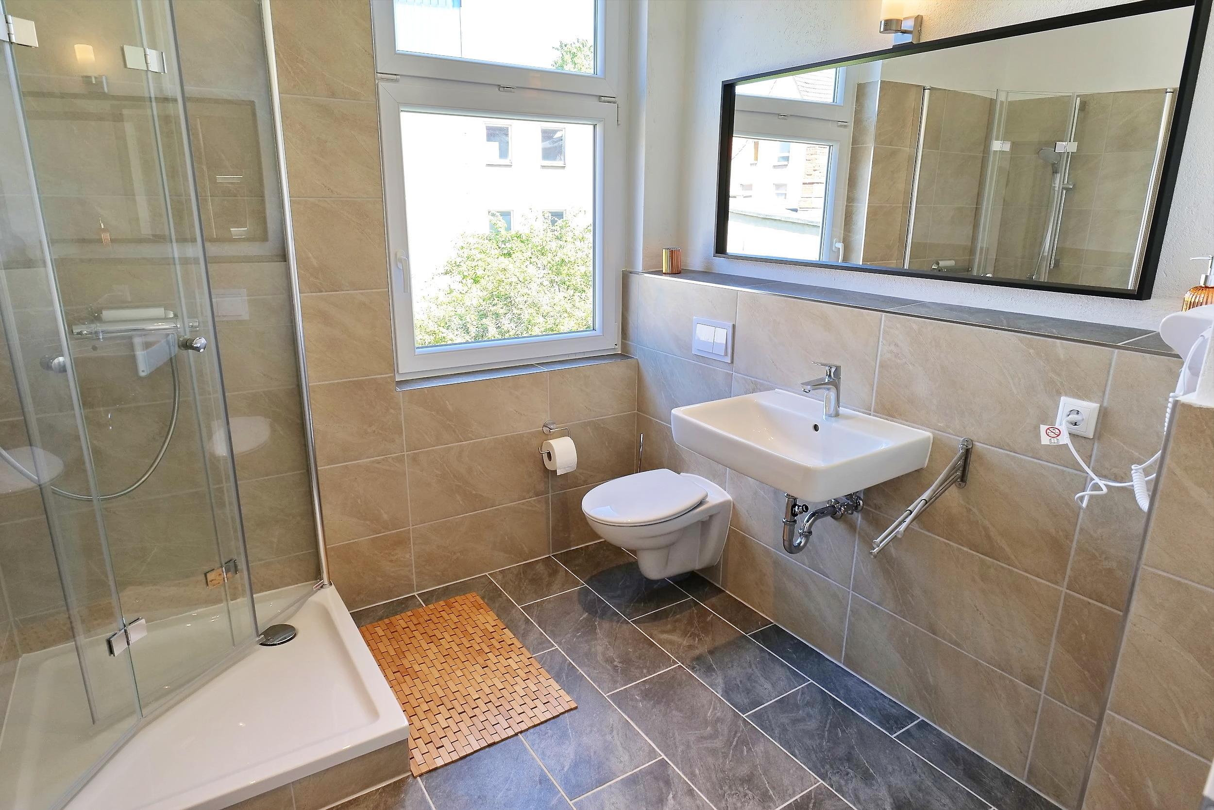 - Duschbad mit Dusche, WC, Spiegel und Ablage