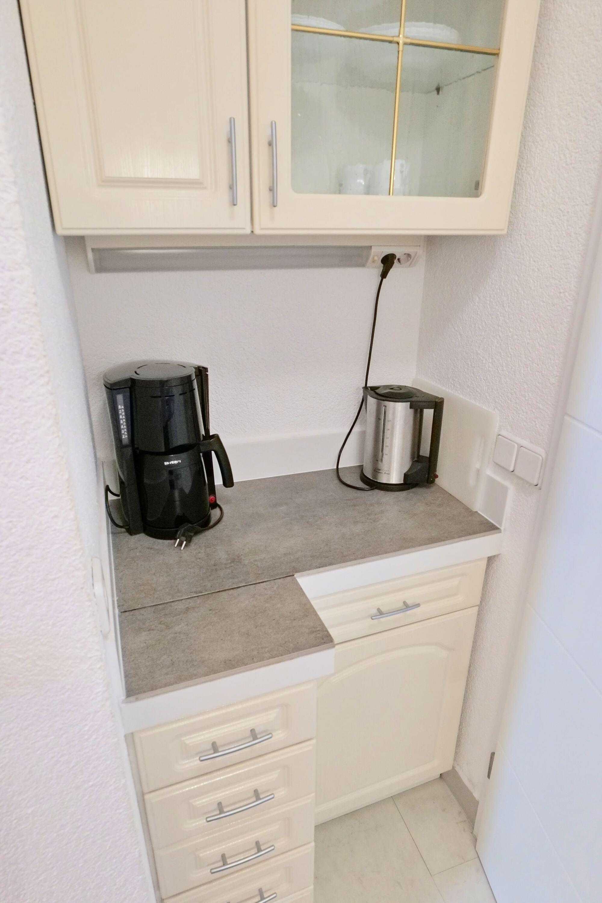 - voll ausgestatte Küchenzeile (Backofen, Kühlschrank, Toaster, Geschirr, Besteck, Töpfe uvm.)