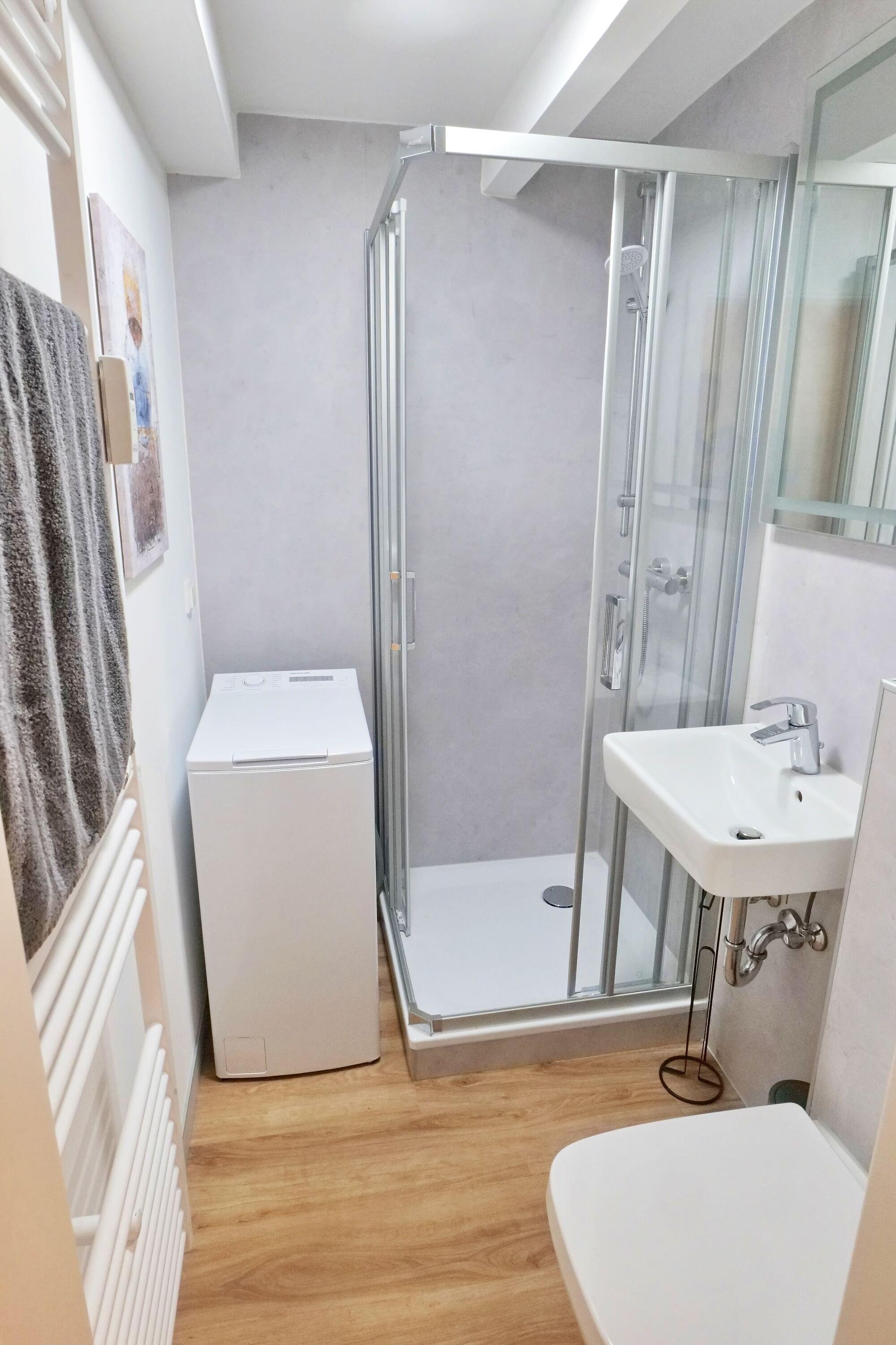 • Bad mit WC / Dusche, Fön, Spiegel, Waschbecken