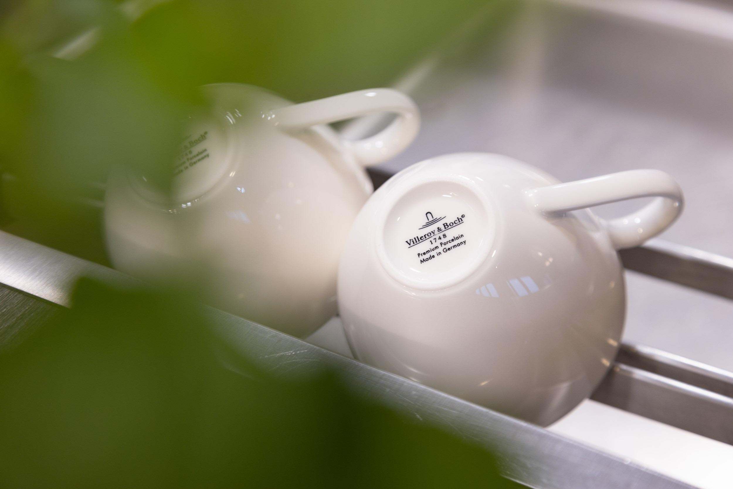Ein weiteres Highlight der Wohnung ist der mit einer hochwertigen Marken-Komfortku¨che ausgestattete offene Wohn-/Essbereich. Hier ko¨nnen Sie jederzeit gemeinsam etwas Feines zubereiten. Die hochwertige hochgla¨nzende Weißlack-Ku¨che verfu¨gt u¨ber einen programmierbaren Backofen, eine Mikrowelle, einen Herd mit vier Ceran-Kochfeldern, großvolumige Mu¨lltrennungs-Schubfa¨cher unter der Design-Spu¨le, eine Spu¨lmaschine mit Timerfunktion, einen gera¨umigen Ku¨hlschrank sowie einen separaten 68l Gefrierschrank fu¨r Ihre Tiefku¨hlvorra¨te (Markengera¨te). Kaffeetrinker ko¨nnen zwischen einer TASSIMO-Kapselmaschine, einer Filterkaffeemaschine oder einer Handkaffeemaschine (French Press) wa¨hlen. Zur Vollausstattung geho¨ren zudem folgende Gera¨te: Milchaufscha¨umer, Handru¨hrgera¨t, Stabmixer, WMF-Messerblock, Wasserkocher, WMF-Toaster, Eierkocher, RO¨SLE-Salatschleuder, Design-Nussknacker, Knoblauchpresse, Kartoffelpresse, WMF-Korkenzieher und vieles mehr. Fu¨r Ihren leckeren selbst gebackenen Kuchen stehen Ihnen Backformen, Kuchengeschirr mit passendem Besteck sowie Schaber, Mixer und weitere Utensilien zur Verfu¨gung. Hochwertige Gla¨ser, edles Geschirr von Villeroy [&] Boch, WMF-Kochmesser und WMF-Besteck, alles ausreichend bemessen fu¨r einen gleichzeitigen Spu¨lmaschinenbetrieb, runden das exkusive Angebot ab.