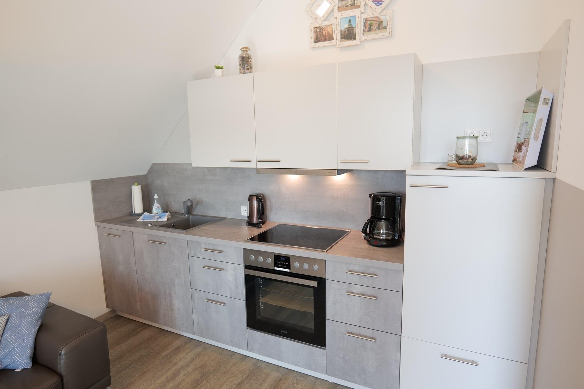 - Wohnzimmer mit Schlafsofa, Offene Küche vollausgestattet, Essbereich für 4 Personen