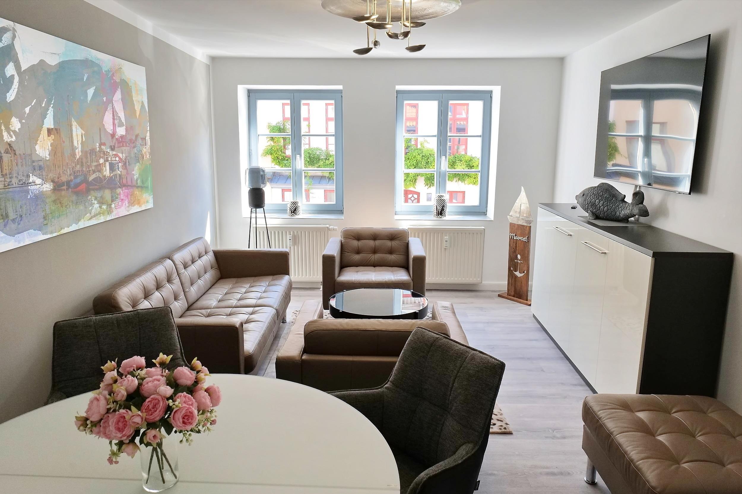 Besuchen Sie unsere neue Traumferienwohnung "Toller Hecht", exklusiv in ruhiger Lage im Herzen der Hansestadt Wismar. Inmitten der malerischen Altstadt, nur wenige Meter zum Wismarer Marktplatz mit seinen Geschäften, Cafés und Restaurants oder zum Wismarer Hafen liegt dieses traumhafte Objekt. Es ist mit ca. 55 qm großzügig geschnitten und bietet komfortabel Platz für bis zu 2-4 Personen. Die Ausstattung ist hochwertig, modern und stilvoll eingerichtet.