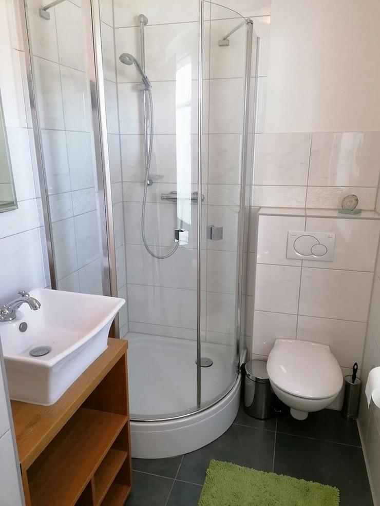 - Duschbad mit Dusche, Waschbecken, Spiegel und WC