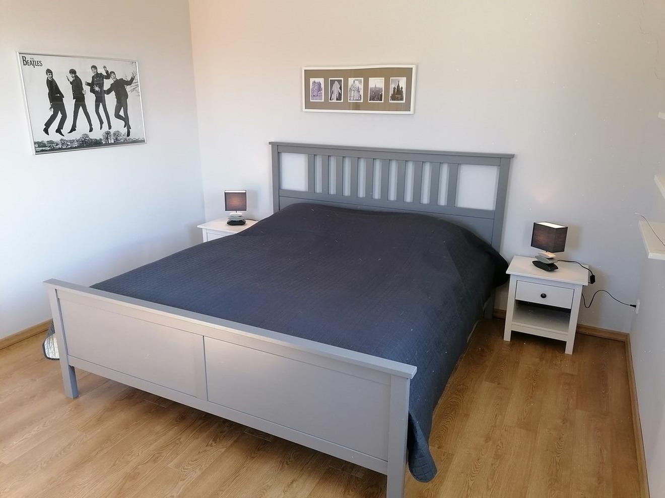 - Schlafzimmer mit Doppelbett, Kinderbett und Kleiderschrank