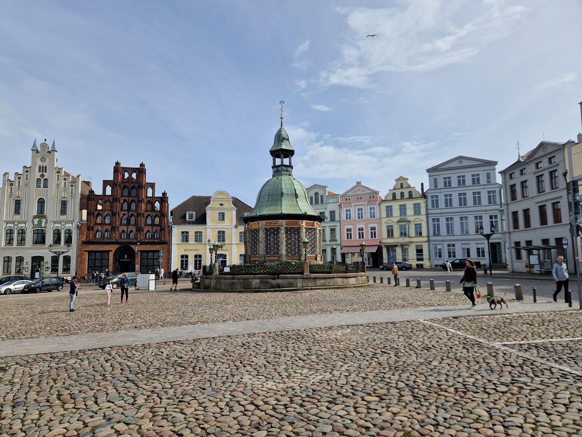 Der Bahnhof und der Busbahnhof liegt zu Fuß etwa 3. min. entfernt, eine Bushaltestelle ist nur Schritte entfernt, der Marktplatz Wismars nur 5 Minuten