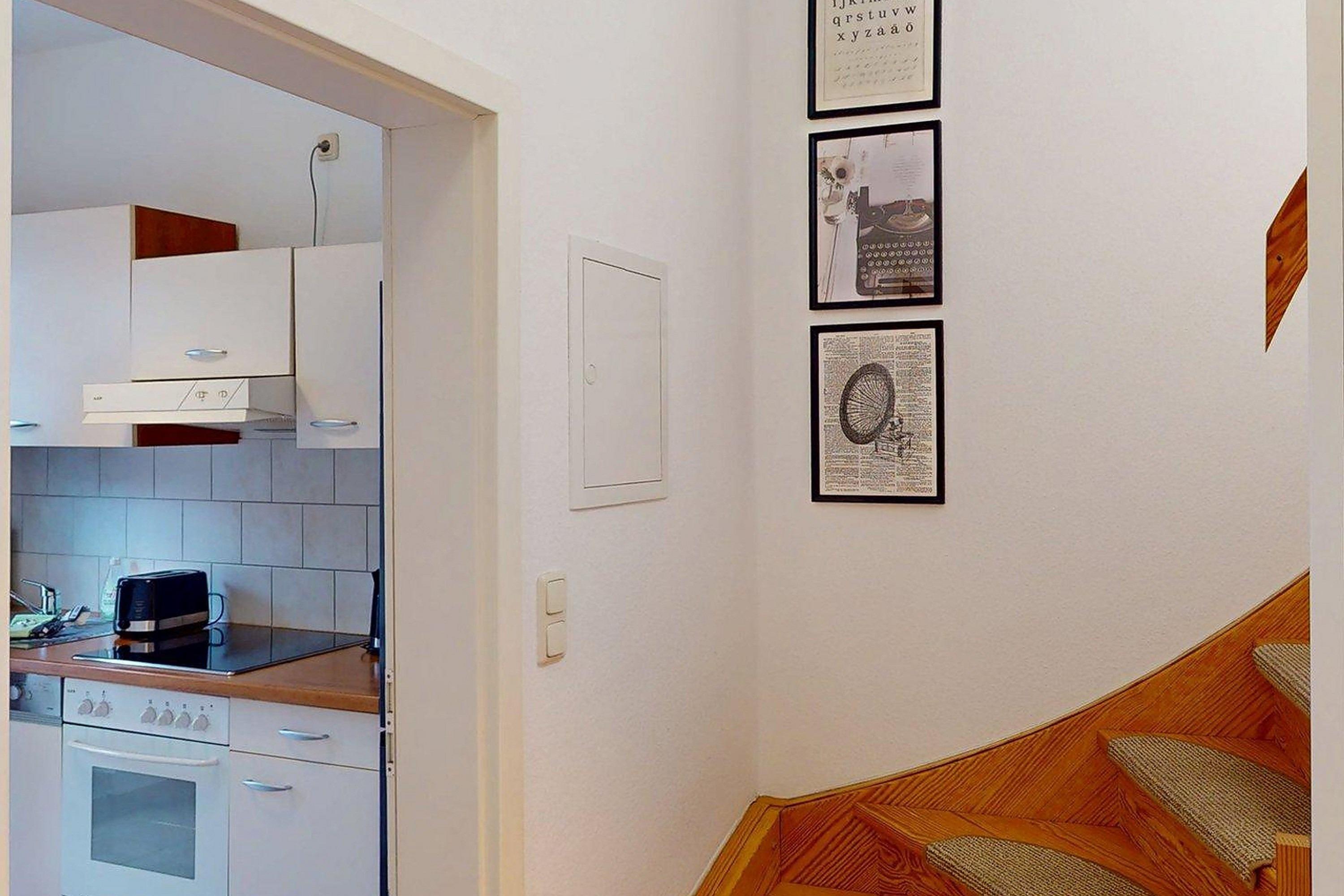 Bitte beachten Sie, dass Sie 2 steile Treppen gehen müssen, bevor Sie in die Wohnung gelangen.
