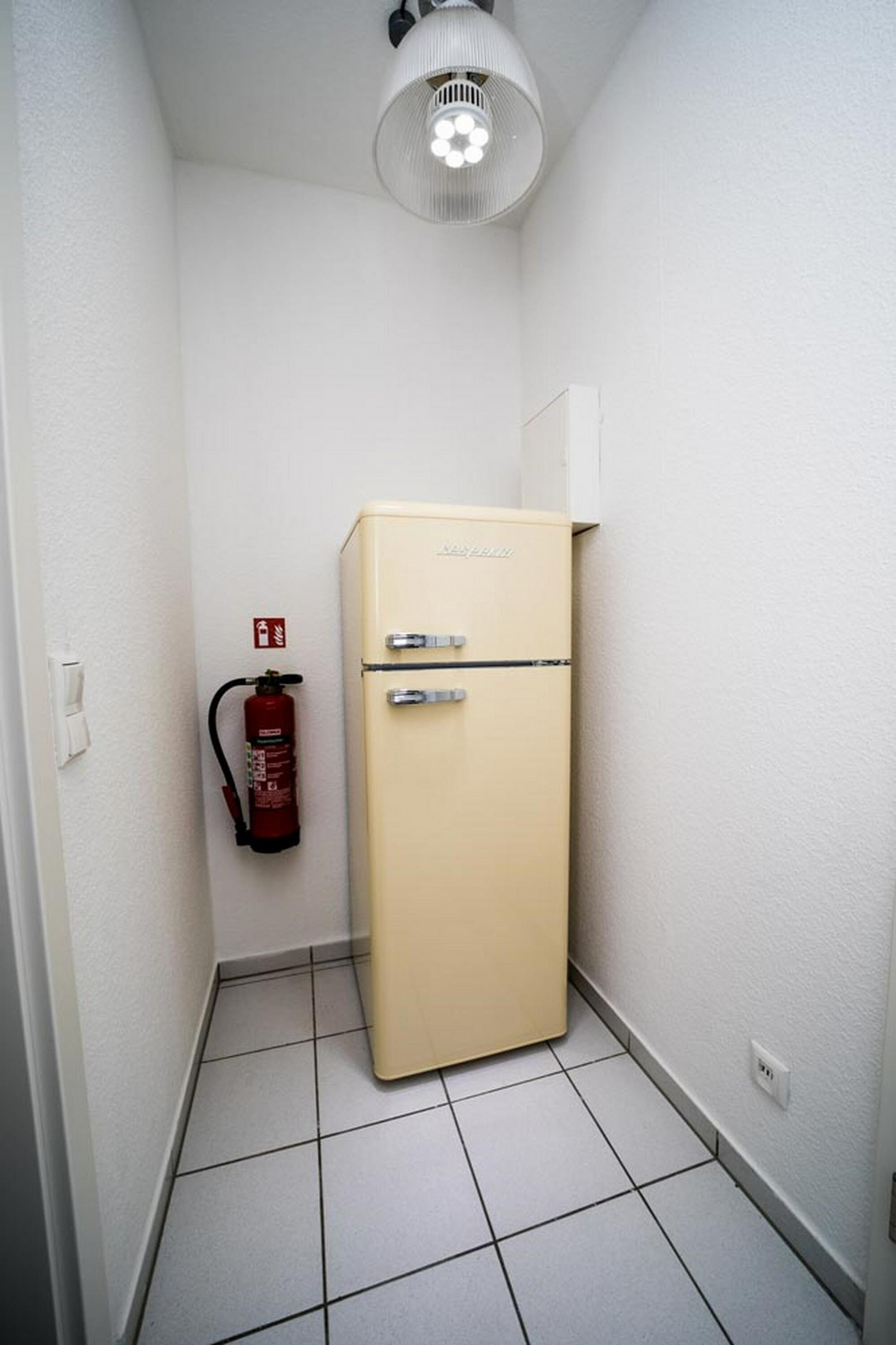 - Küche mit Herd, Kühlschrank, Spüle