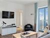 Das lichtdurchflutete und barrierearme Apartment verfügt über bodentiefe Fenster und kostenfreies WLAN.